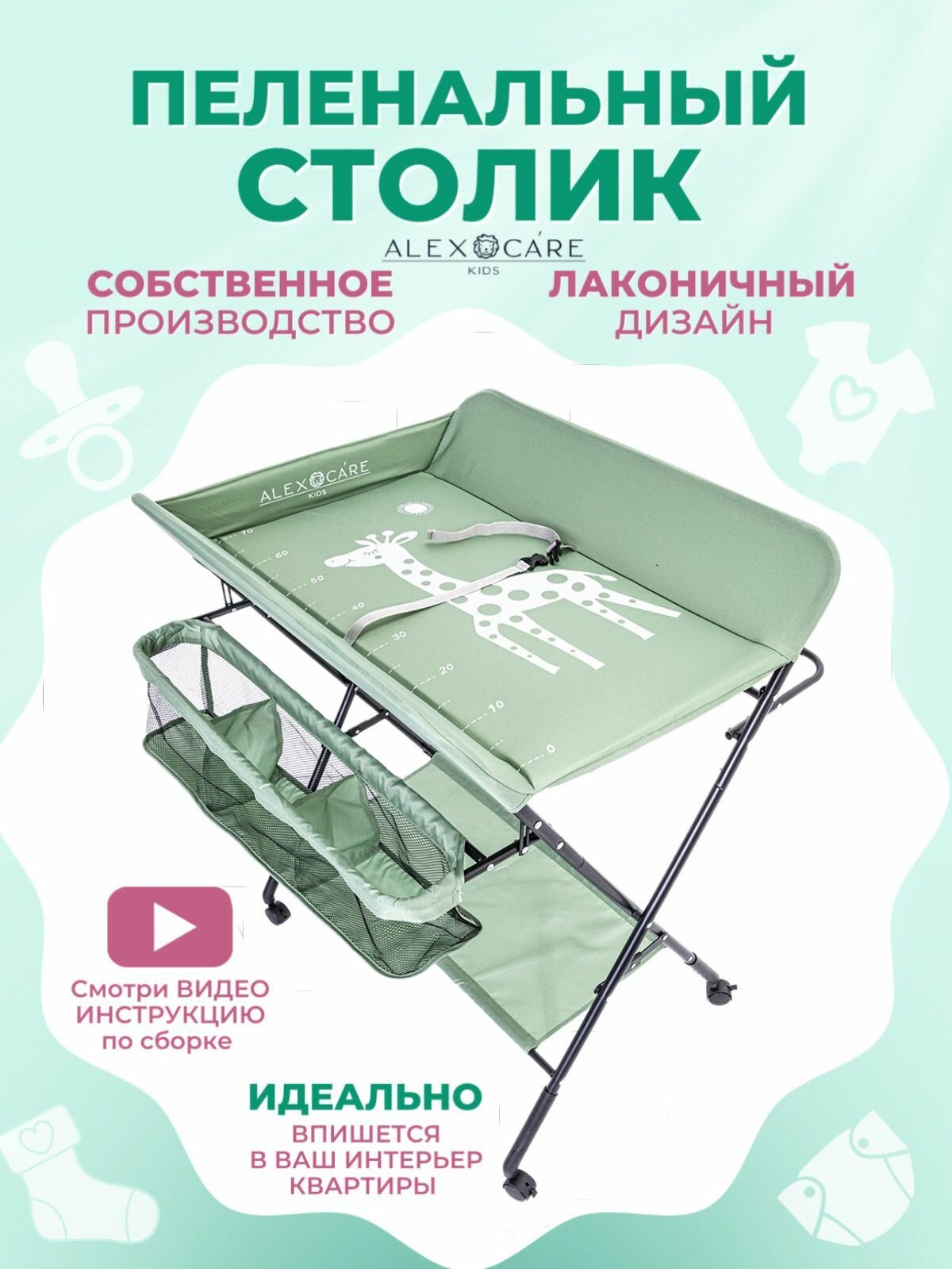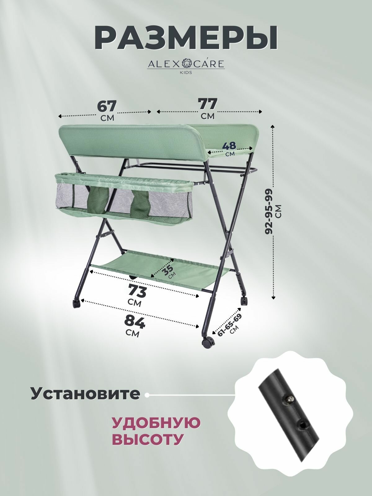 Пеленальный столик ALEX CARE KIDS, металл, ткань, салатовый, 48 х 77 х 80 см интересное: