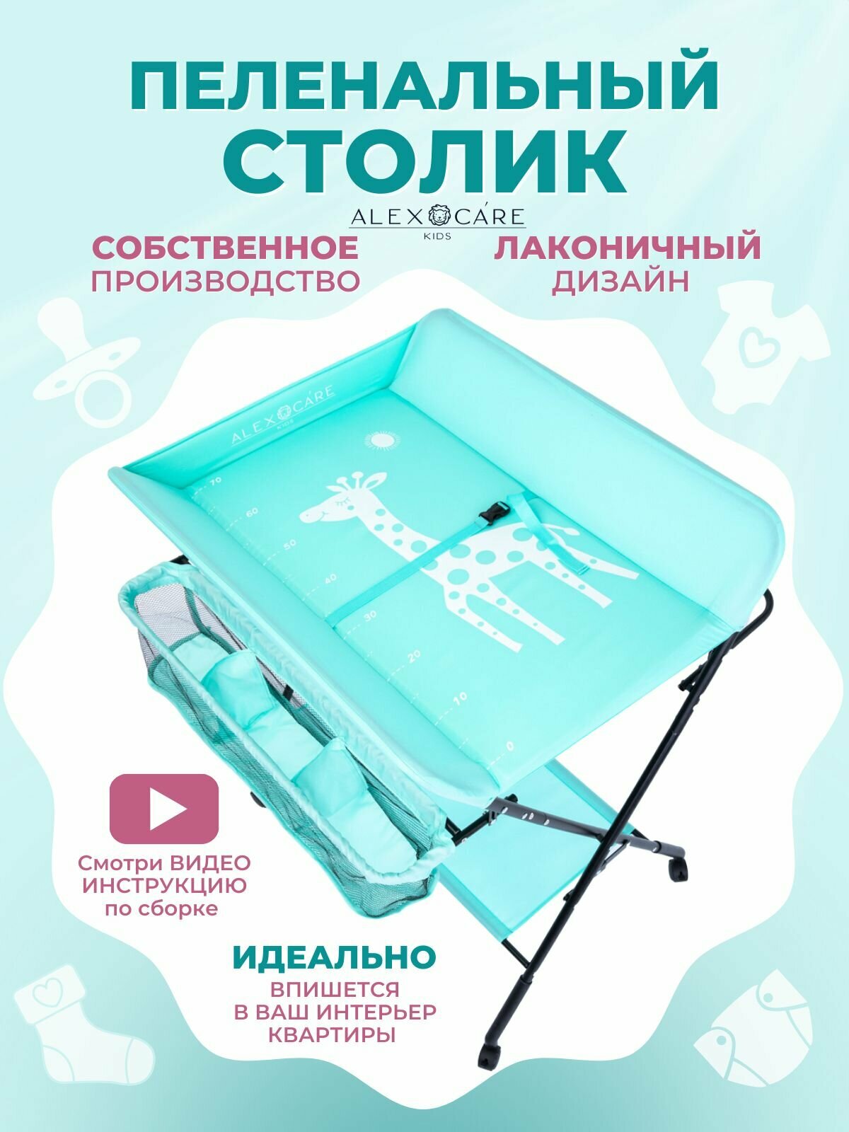 Ниже Вы можете прочитать отзывы на Пеленальный столик ALEX CARE KIDS, металл, ткань, Бирюзовый, Размер - 48х77х80 см, ознакомится с подробными характеристиками, посмотреть интересные обзоры и фотографии на Пеленальный столик ALEX CARE KIDS, металл, ткань, Бирюзовый, Размер - 48х77х80 см.