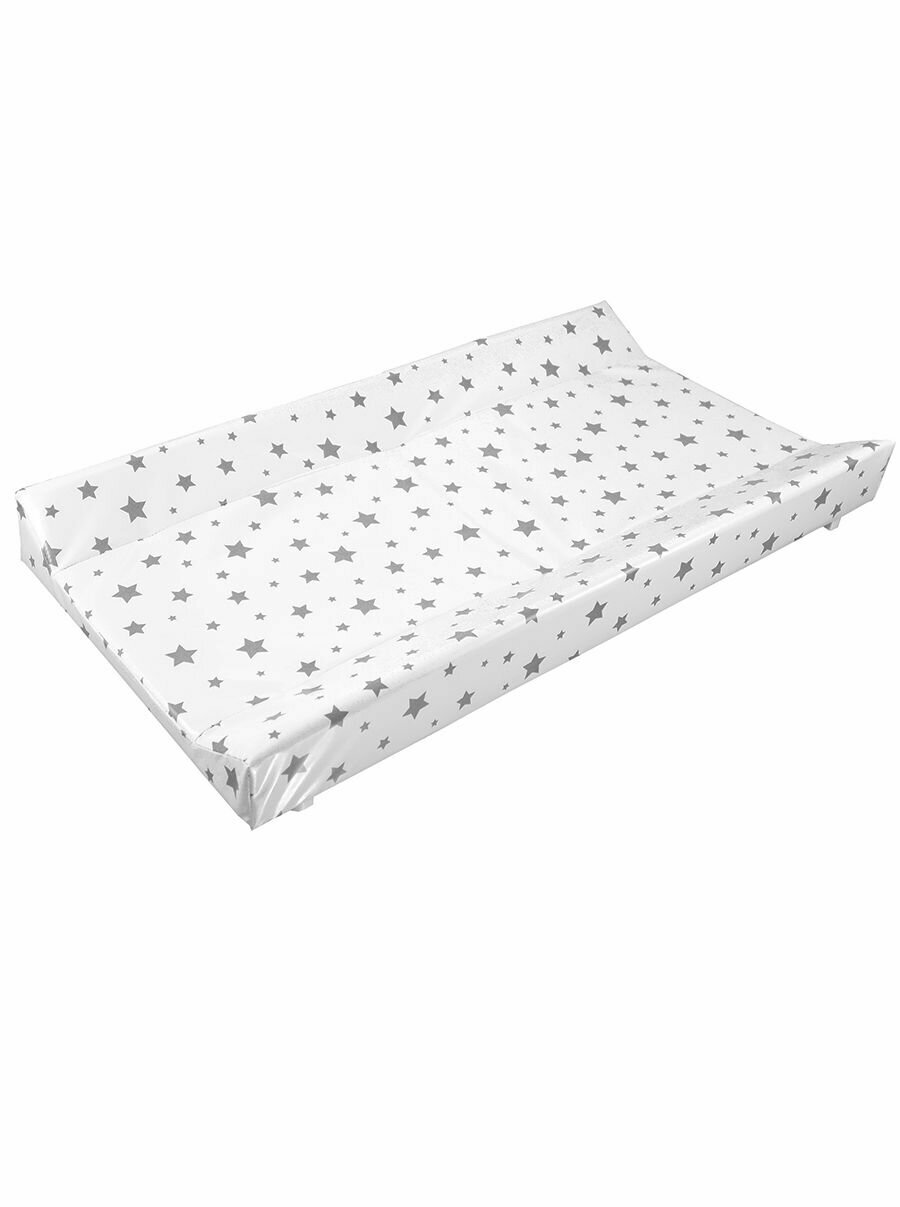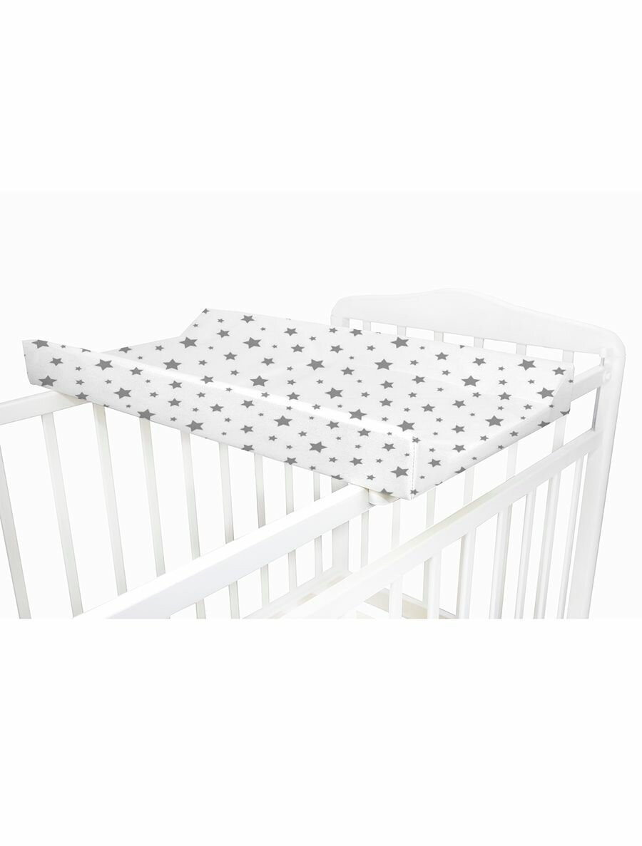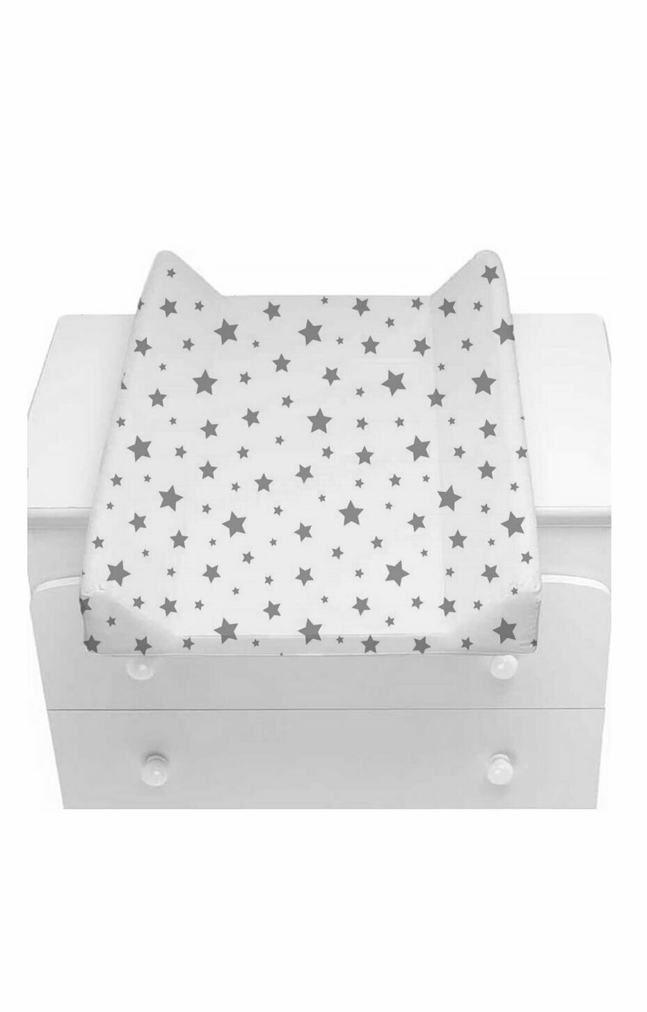 Пеленальная доска для новорожденного на кровать, комод с чехлом на резинке бязь белый звезды серые