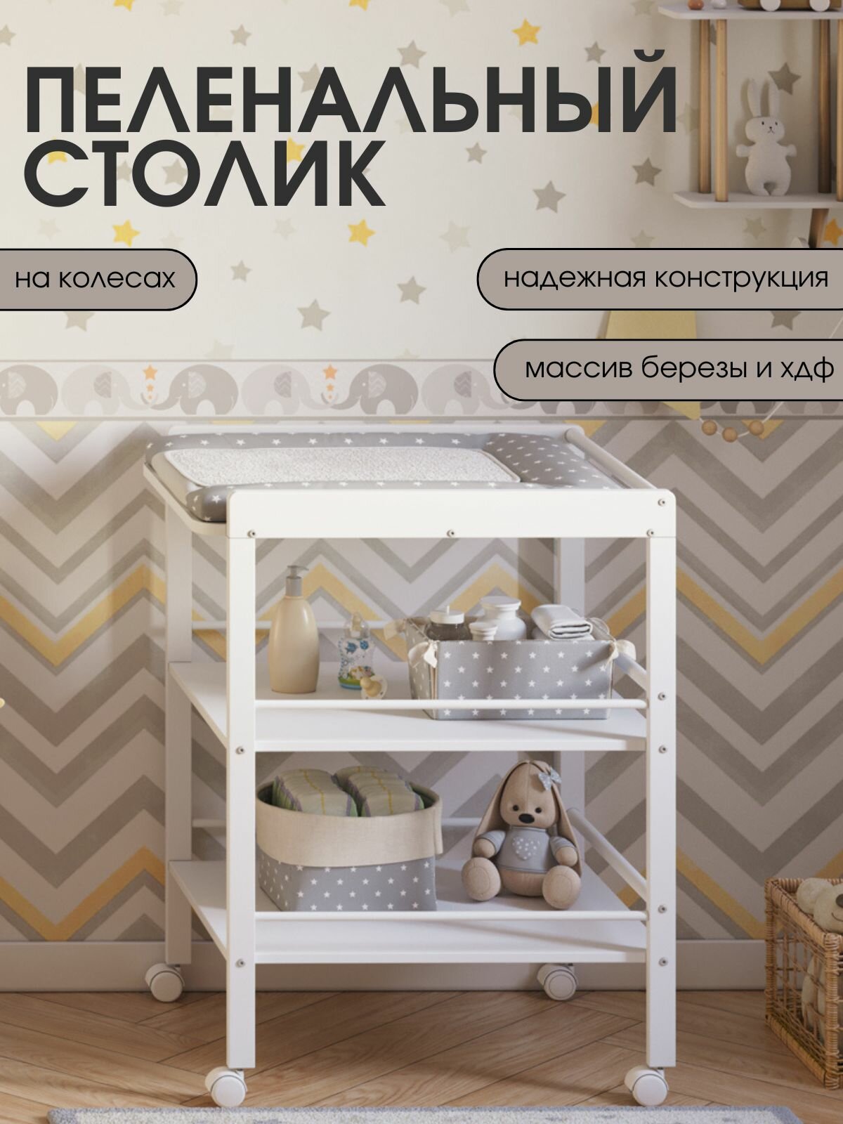 Пеленальный столик "Mr Sandman Effect", для новорожденных, на колесиках, с полками, белый интересное: