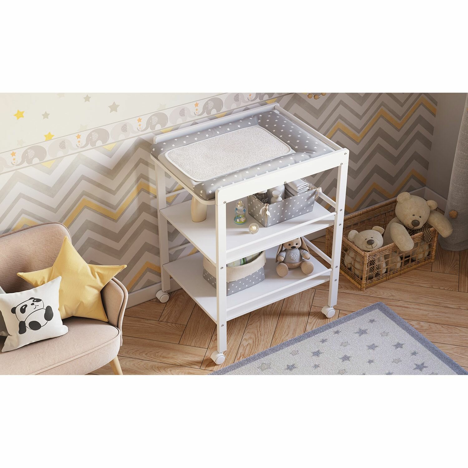 Купить Пеленальный столик "Mr Sandman Effect", для новорожденных, на колесиках, с полками, белый