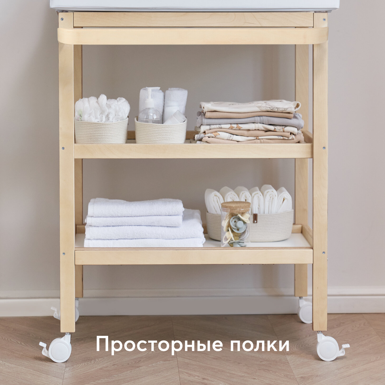 91039, Пеленальный стол с матрасом Happy Baby LAFINO, деревянный, на колесиках, белый интересное: