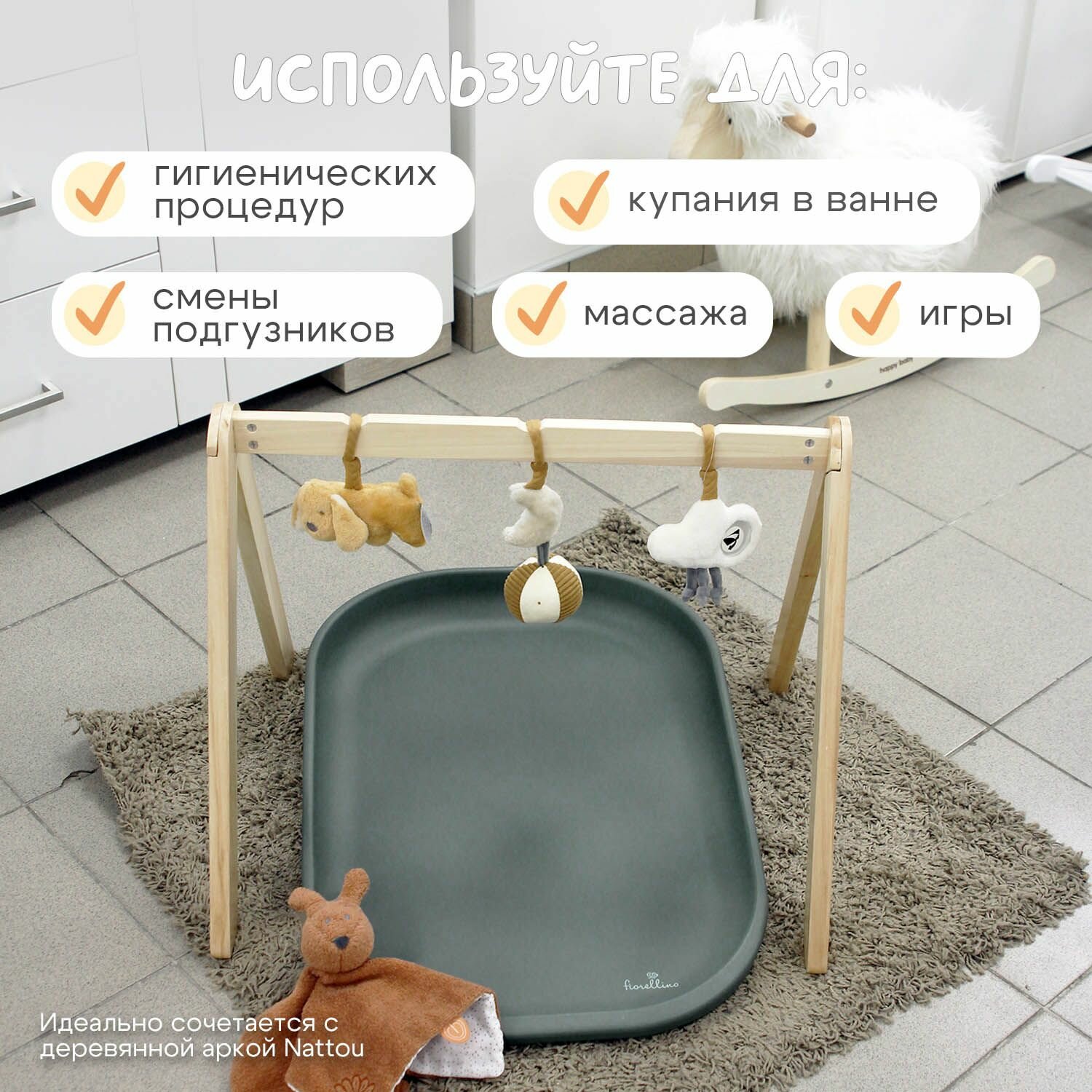 Матрасик пеленальный Fiorellino Agave Green 18-5806TCX интересное:
