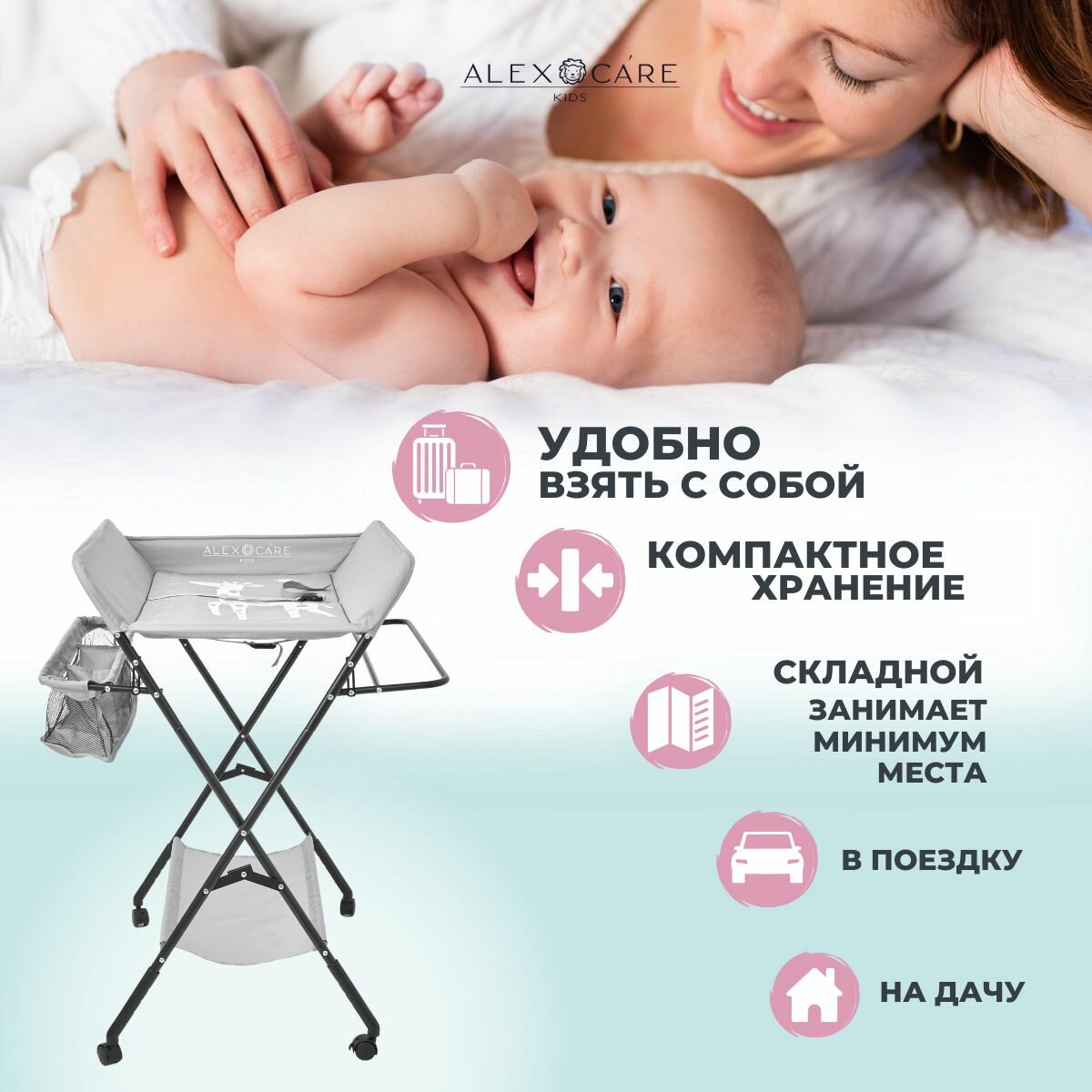 Складной пеленальный столик для детей, цвет светло- серый ALEXCARE интересное: