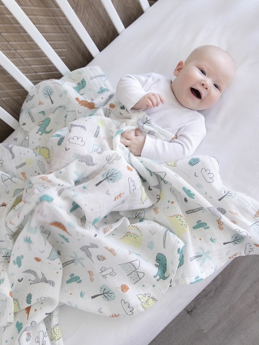 Муслиновые пеленки для новорожденных хлопок 120х120, "Динозаврики" Tessolo Home интересное: