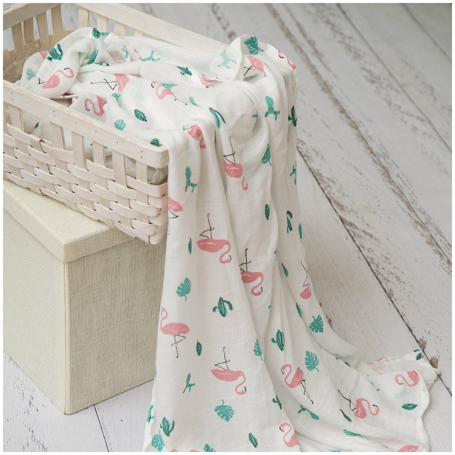 Пеленки для новорожденных муслиновые 120х120 "Фламинго", Хлопок 100%. Пеленка детская муслиновая для младенцев Baby Nice интересное: