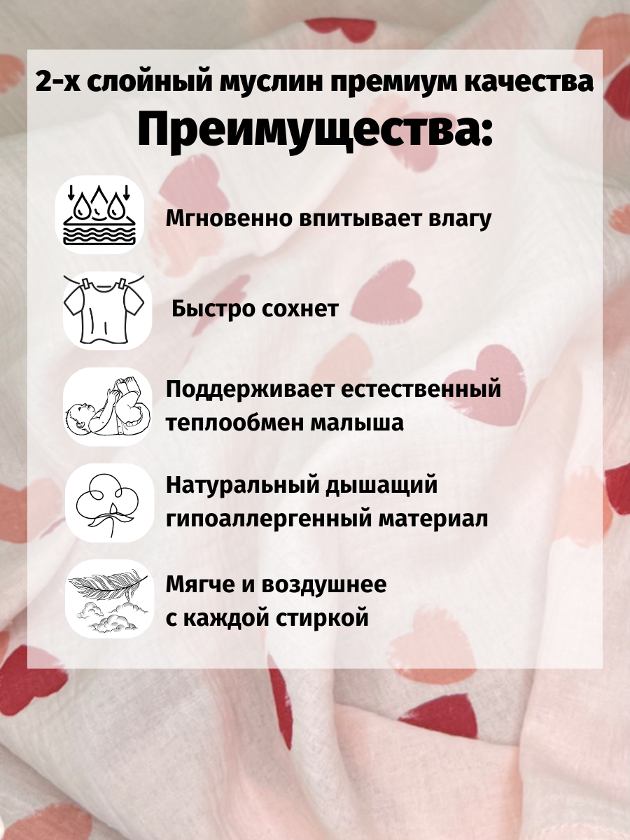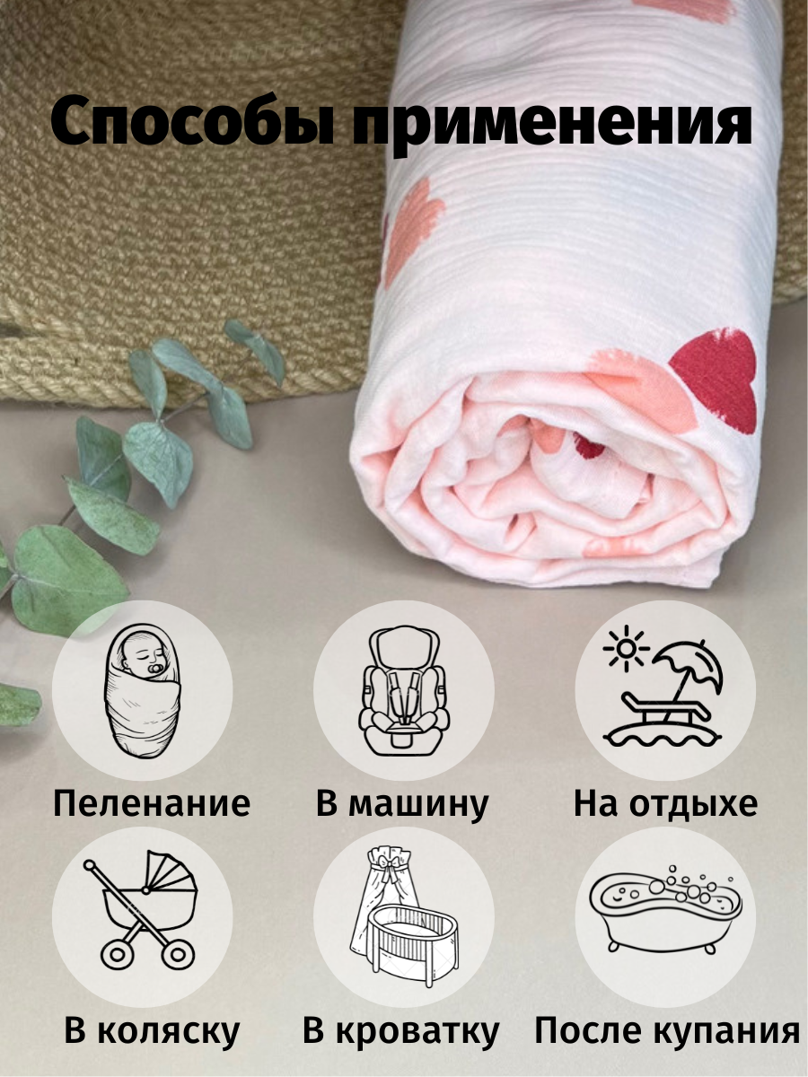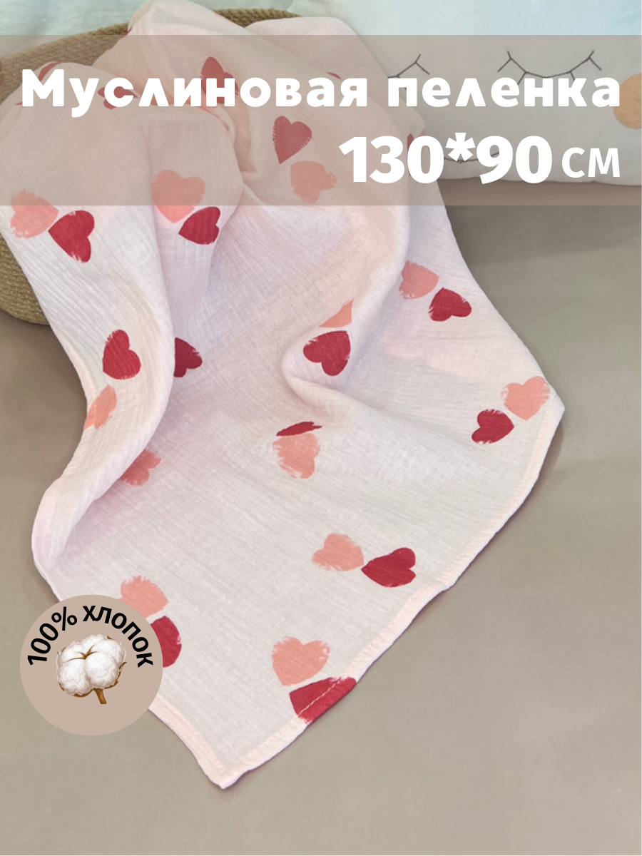 Муслиновая пеленка для новорожденных Kiddie Sofi нежно розовая с большими сердечками, 130х90 см интересное: