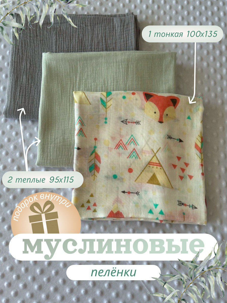 Пеленки для новорожденных муслиновые , 95х115, 3шт/упак интересное: