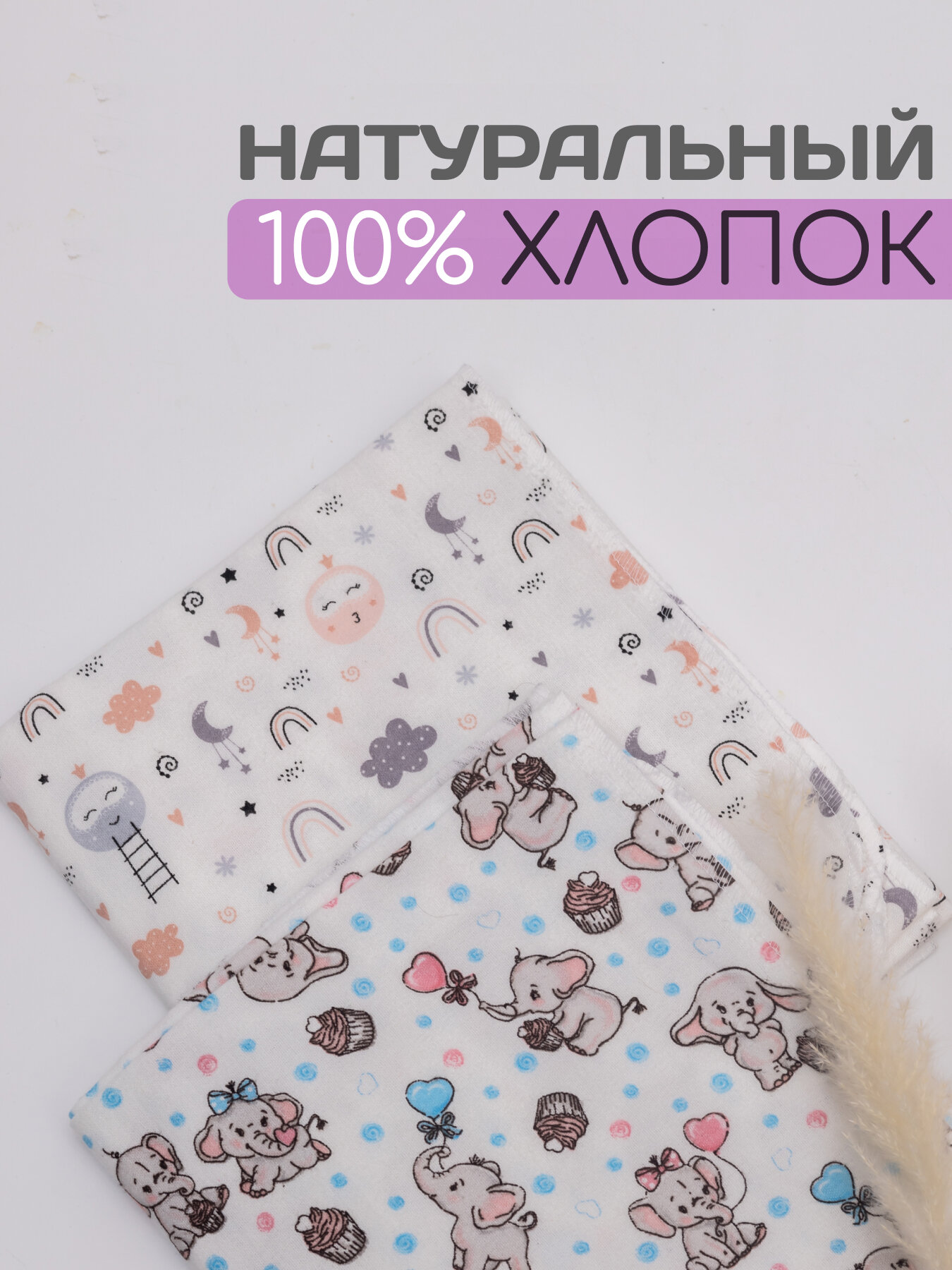 СохранитьПеленки для новорожденных, хлопок, многоразовые, 2 слоя, 90х100см, комплект 2шт. интересное: