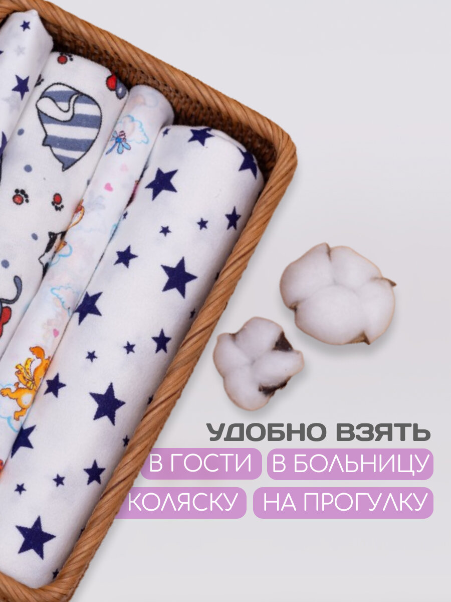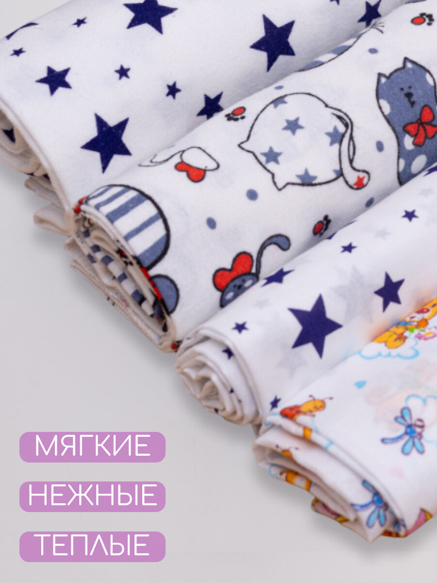 Пеленки, фланелевые, хлопковые, 90x100 см, впитывающие, гипоаллергенные, комплект 4 шт