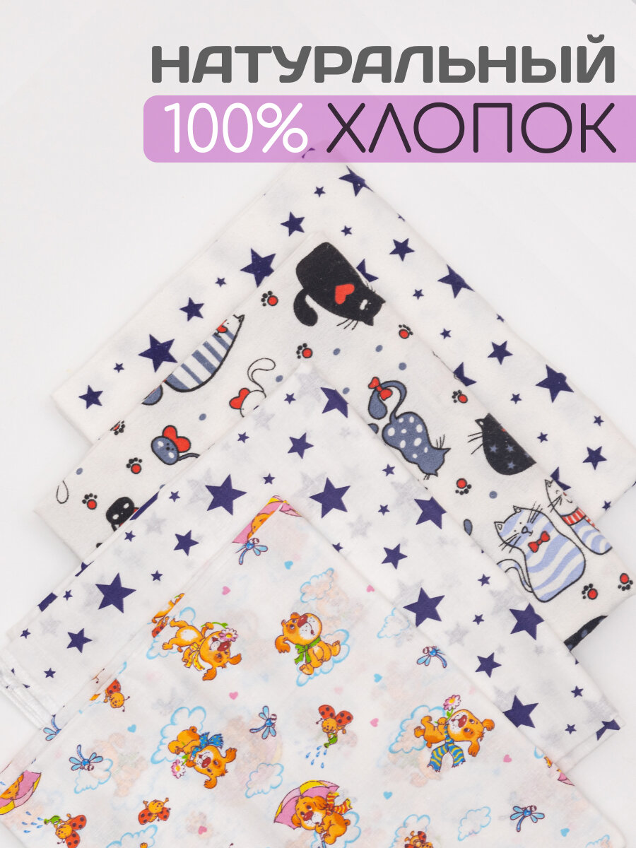 Купить Пеленки для новорожденных, 90х100 см, хлопок, впитывающие, гипоаллергенные, комплект 4 шт.