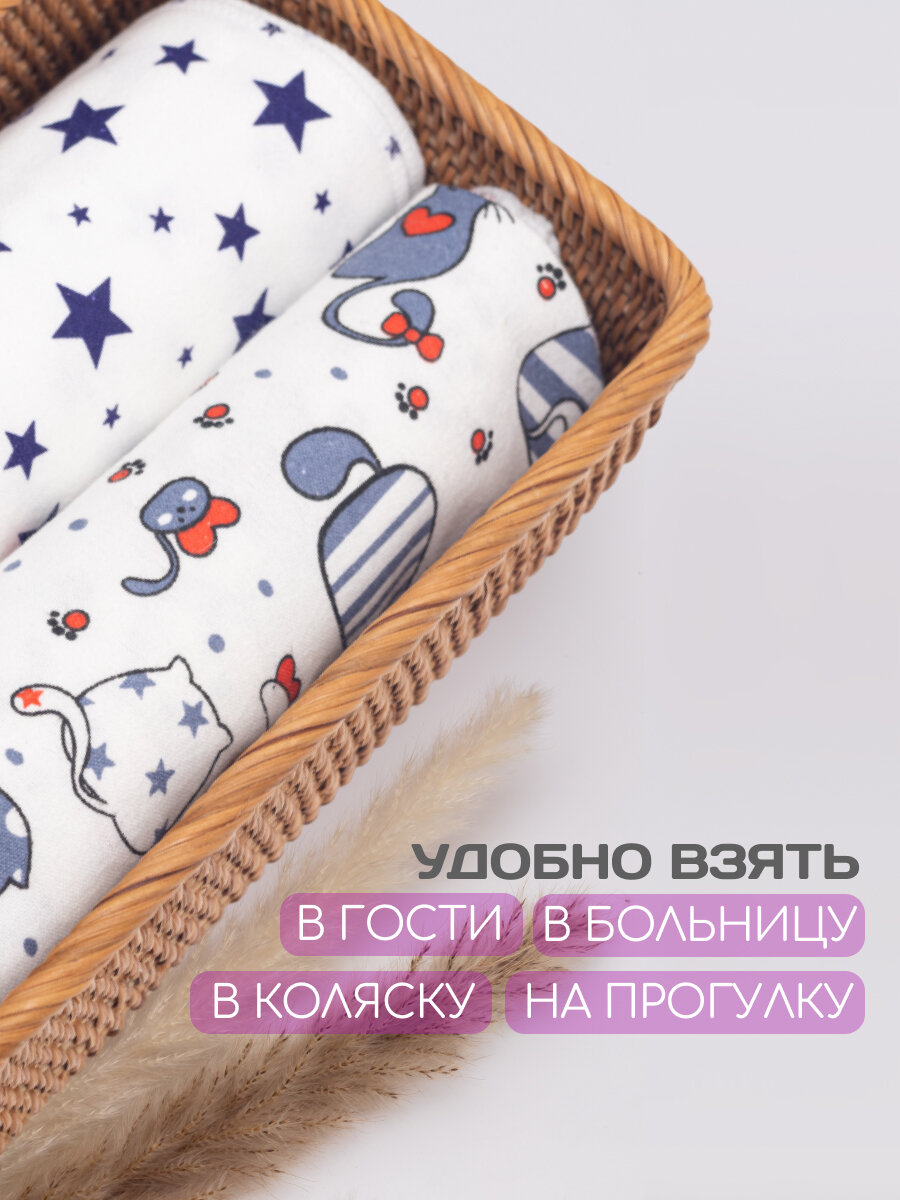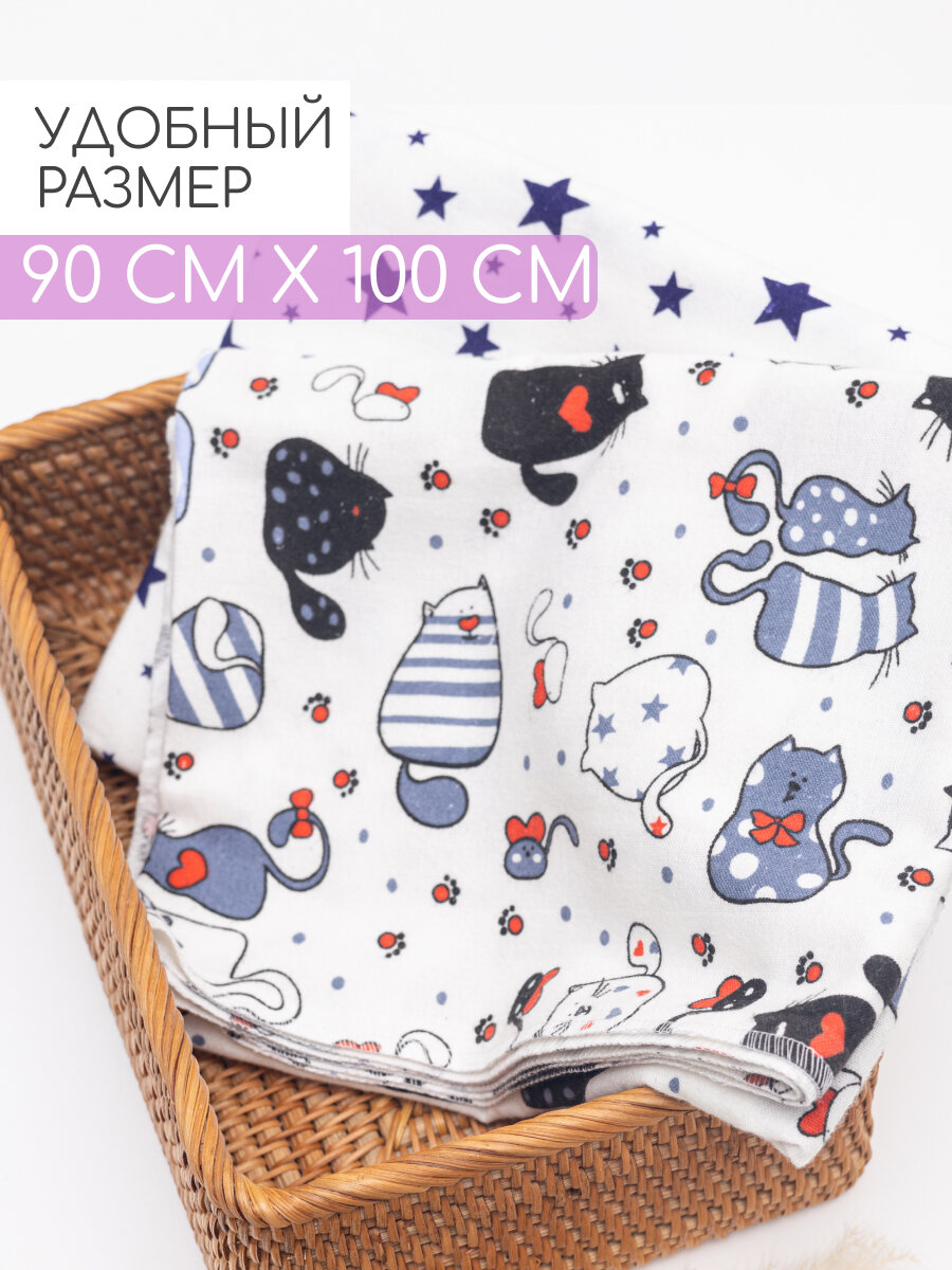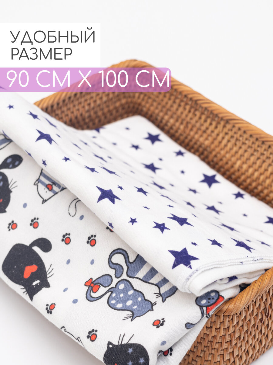 Пеленки, фланелевые, хлопковые, 90x100 см, впитывающие, гипоаллергенные, комплект 4 шт