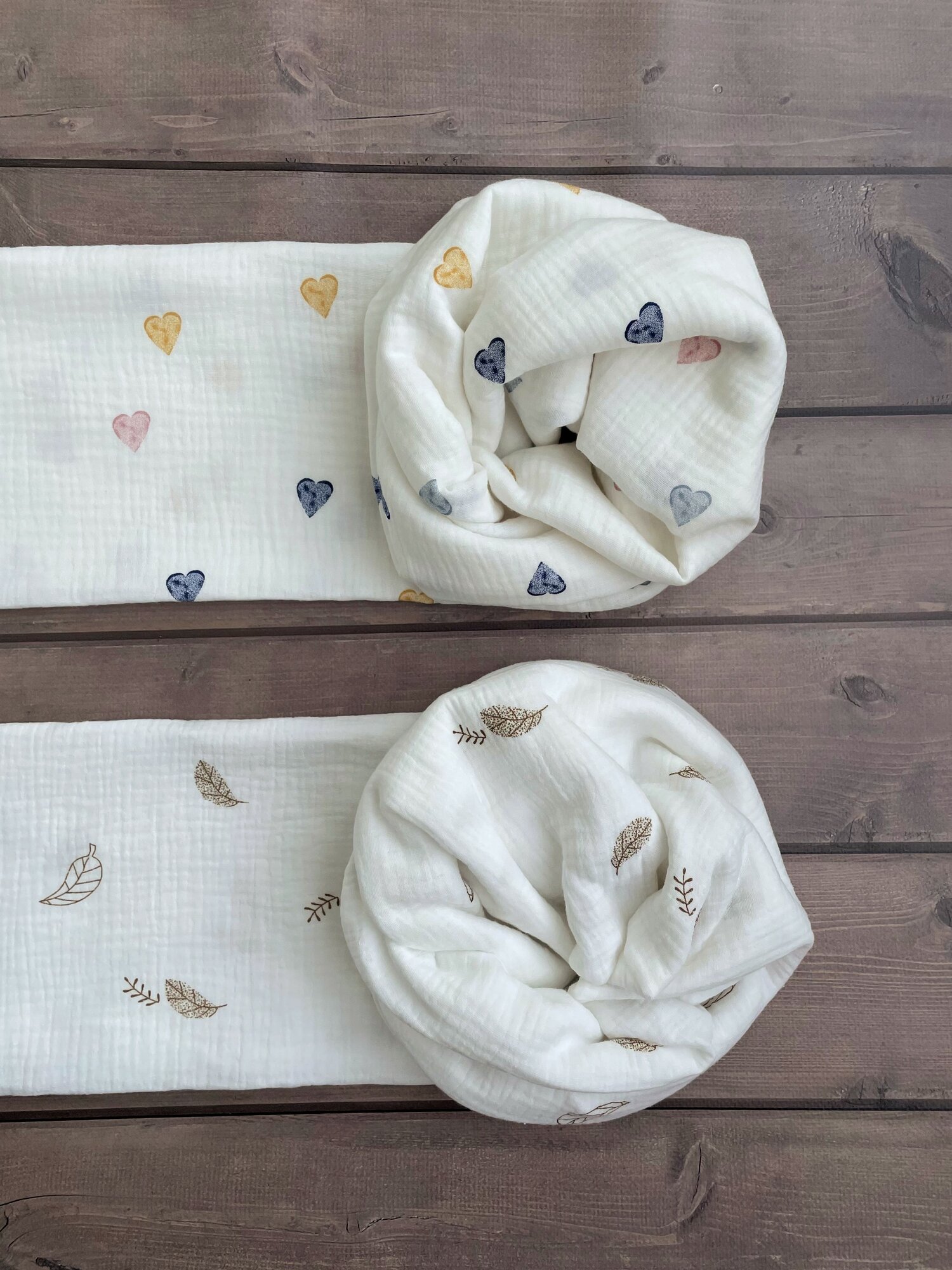 Пеленка текстильная муслиновая MuslinKids для новорожденных 100х135 см, Хлопок, Муслин, белый (сердечки2)