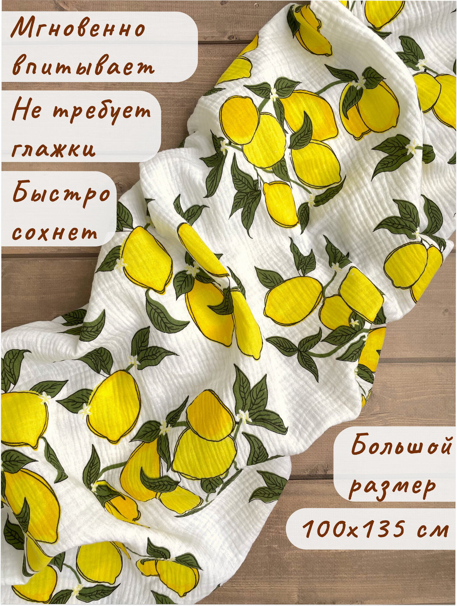СохранитьПеленка текстильная муслиновая MuslinKids для новорожденных 100х135 см, Хлопок, Муслин, белый (лимоны) интересное: