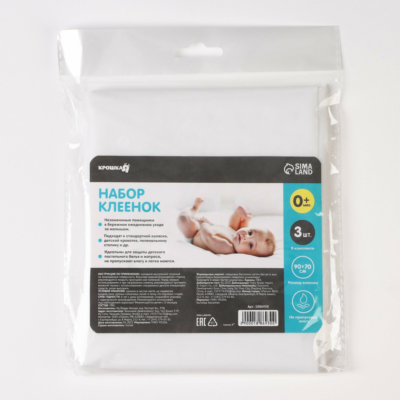 Набор детских непромокаемых клеёнок, 90х70 см, 3 шт, цвета микс, 1886930 интересное: