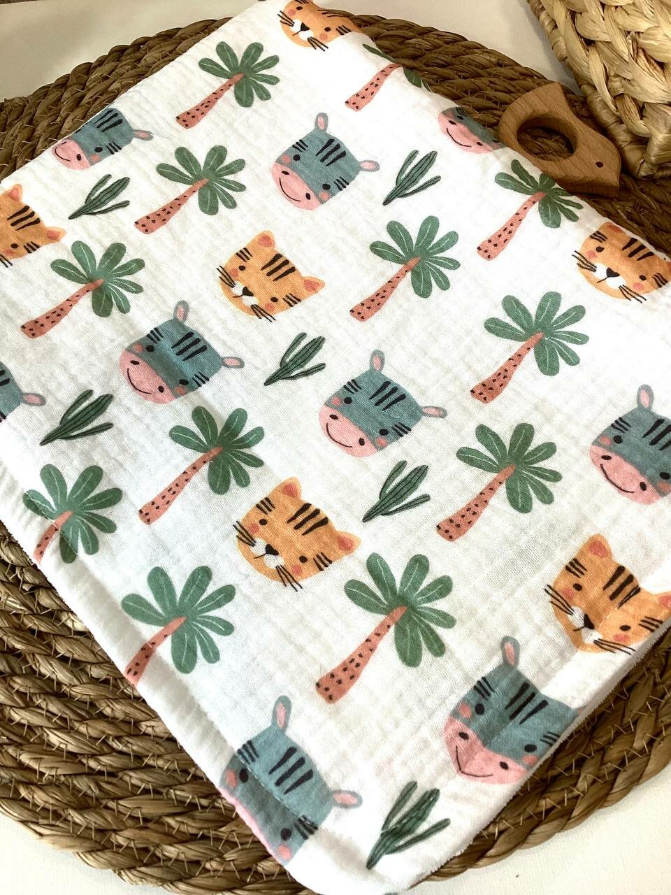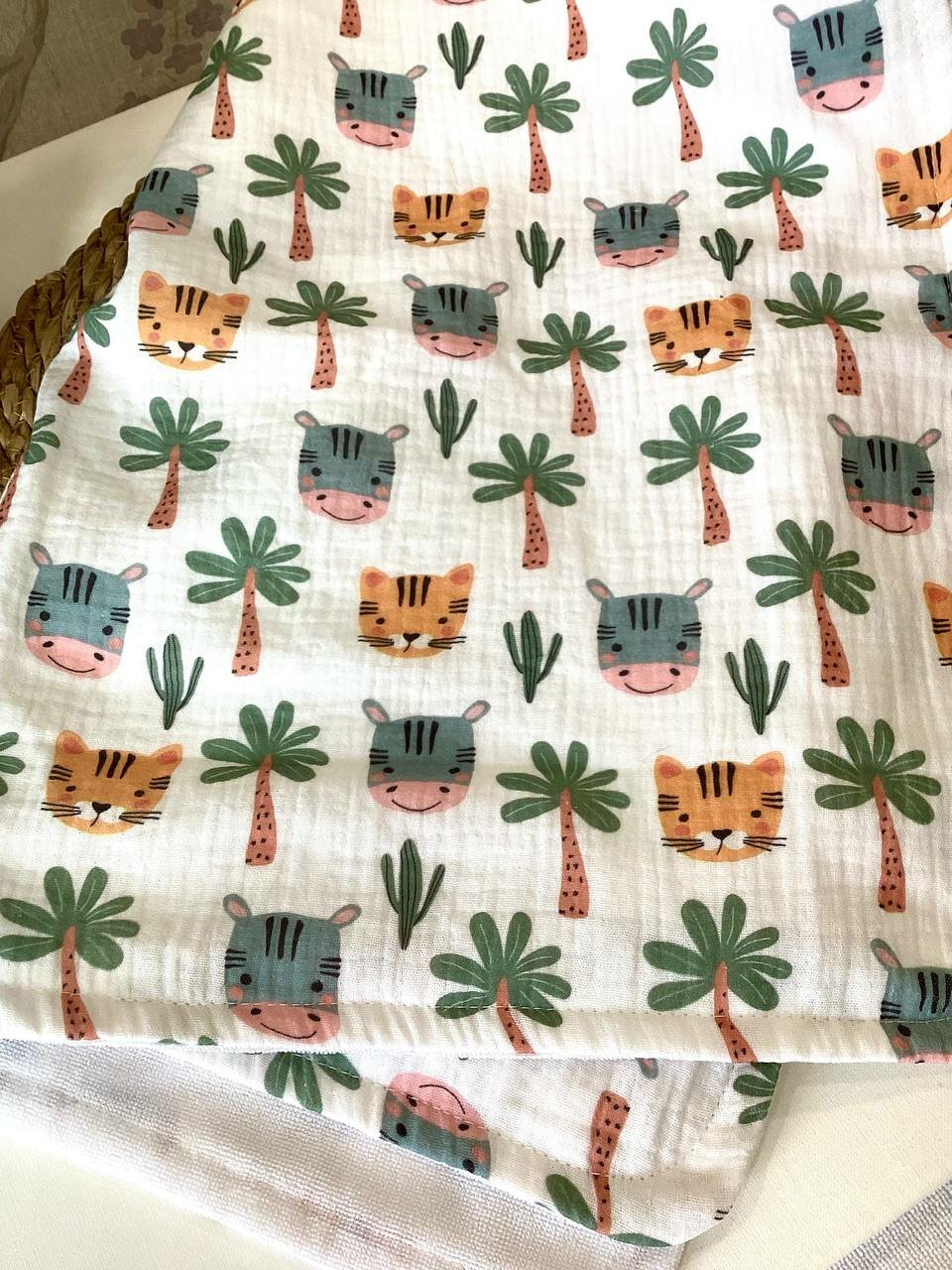 Муслиновая непромокаемая многоразовая пелёнка 60/90 см "Зверята" интересное: