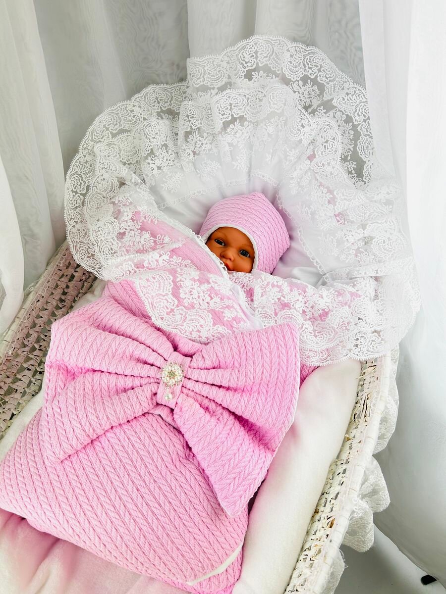 Уголок кружевной в конверт одеяло на выписку новорожденного