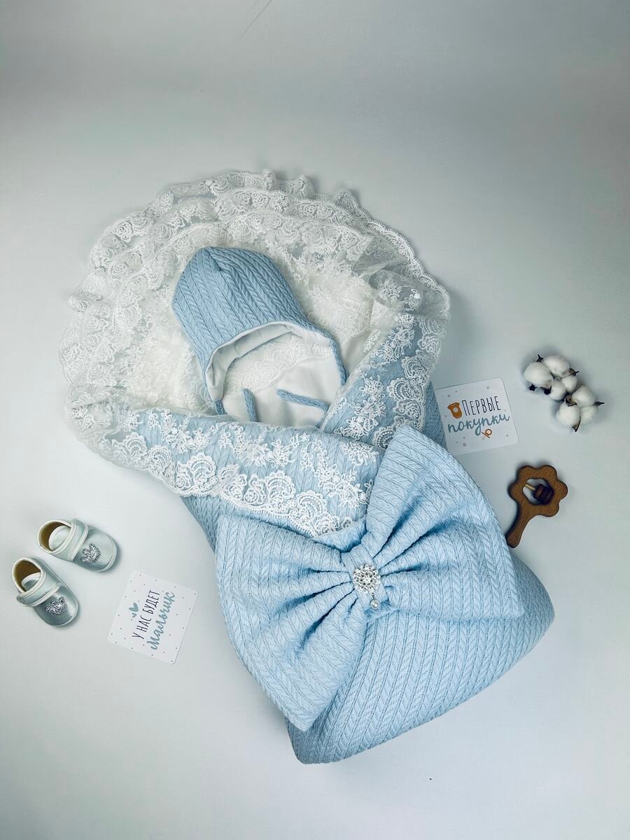 Уголок-пелёнка на выписку кружевной голубой