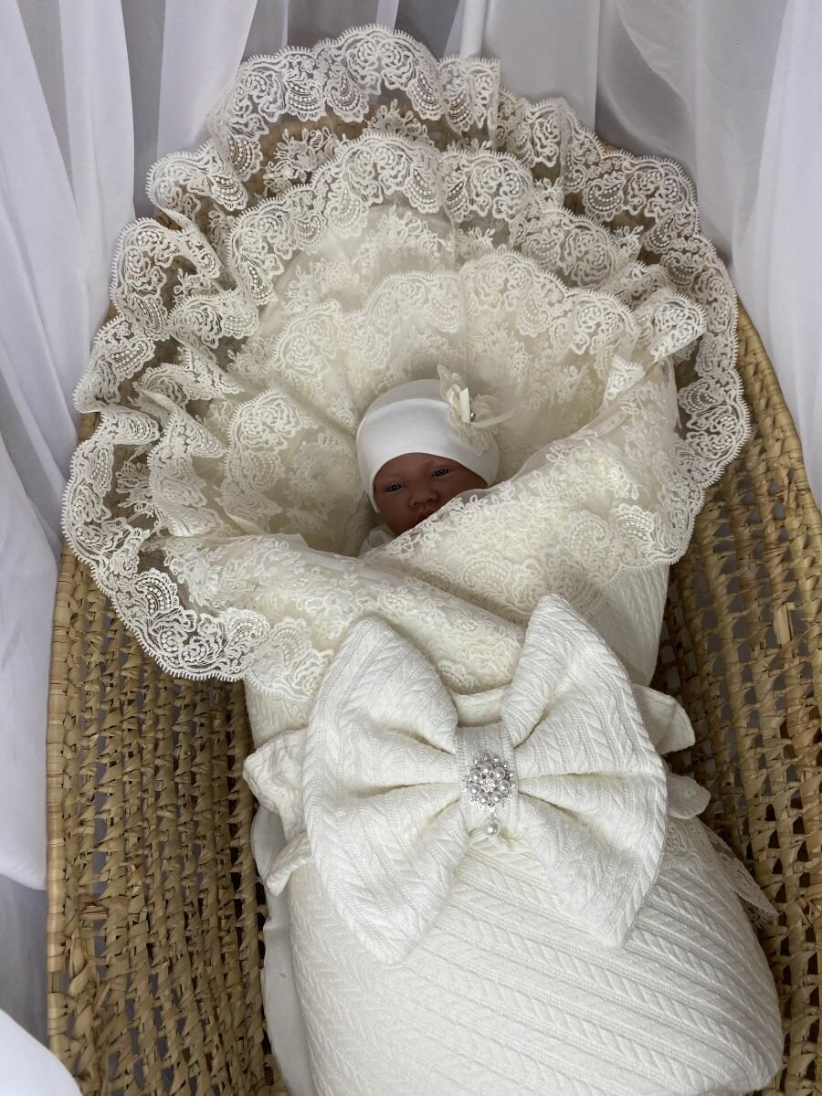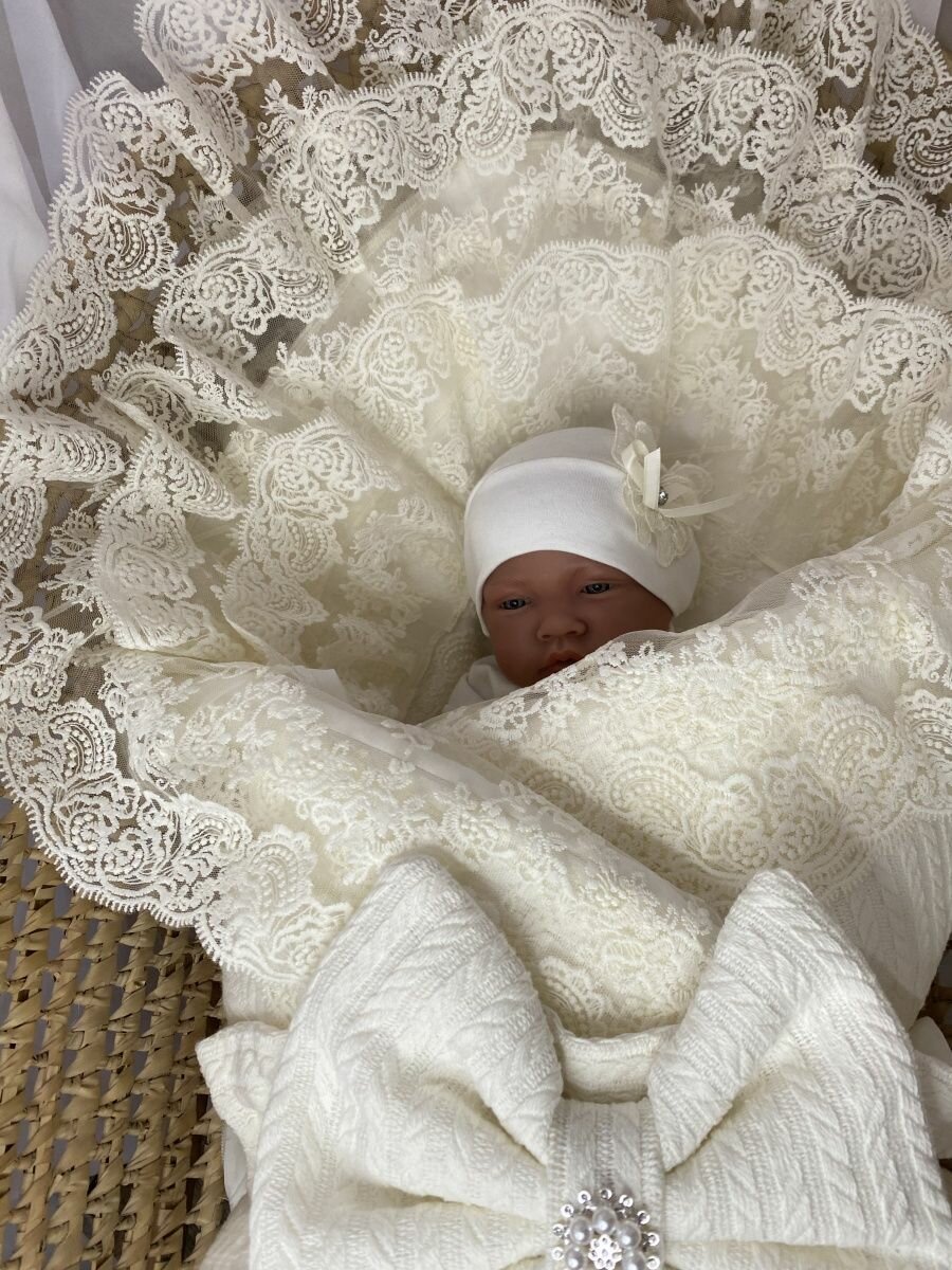 Уголок кружевной в конверт одеяло на выписку новорожденного