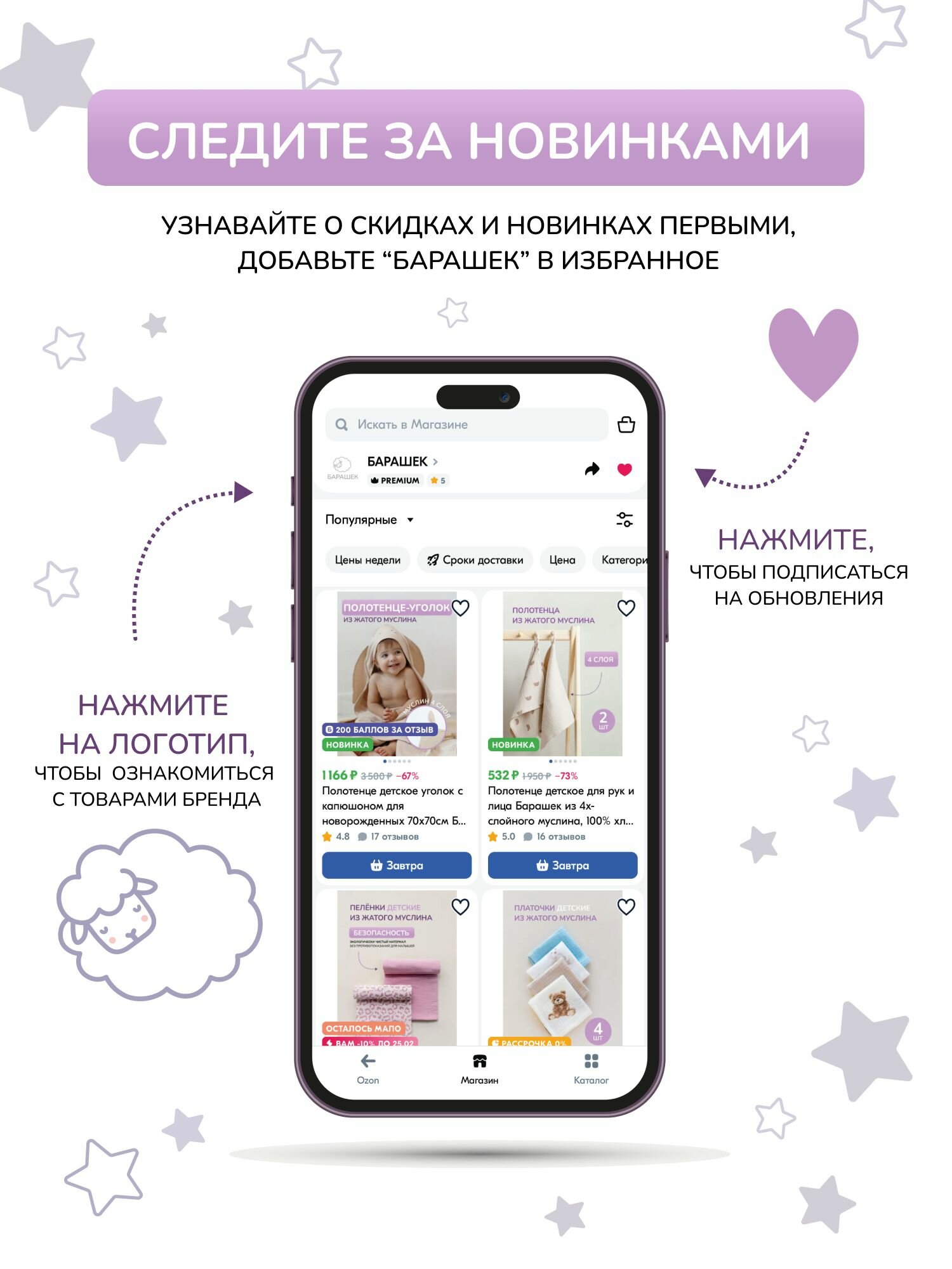Муслиновые пеленки для новорожденных в наборе Барашек 120х90 см, Хлопок, Муслин, 2 шт интересное: