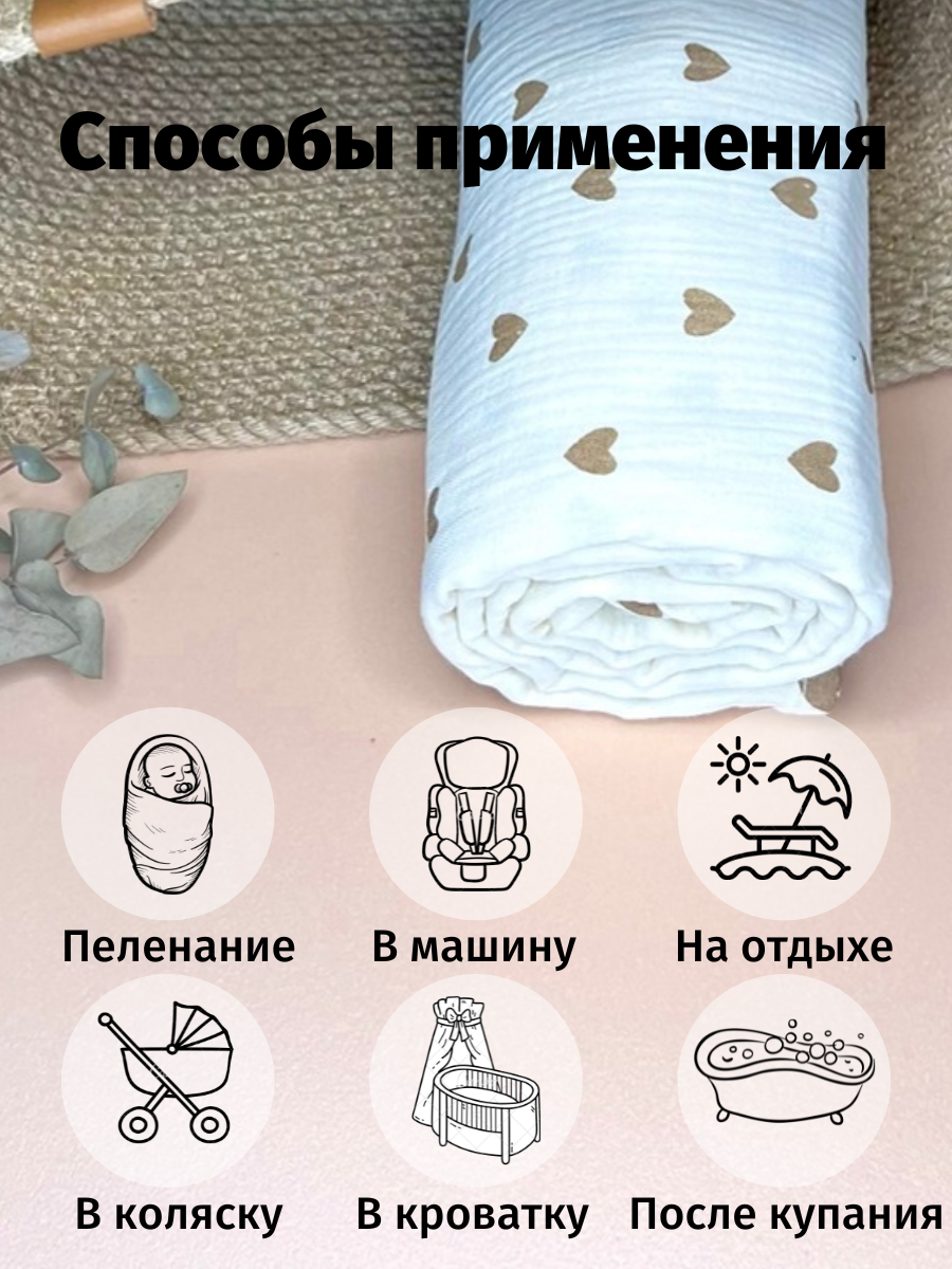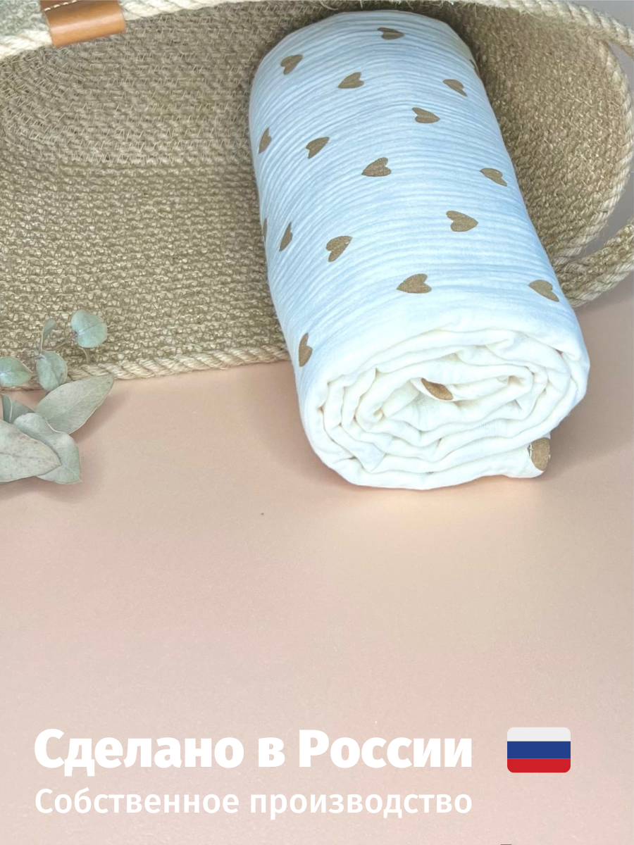 Муслиновая пеленка для новорожденных Kiddie Sofi бежевая с маленькими сердечками, 130х90 см интересное: