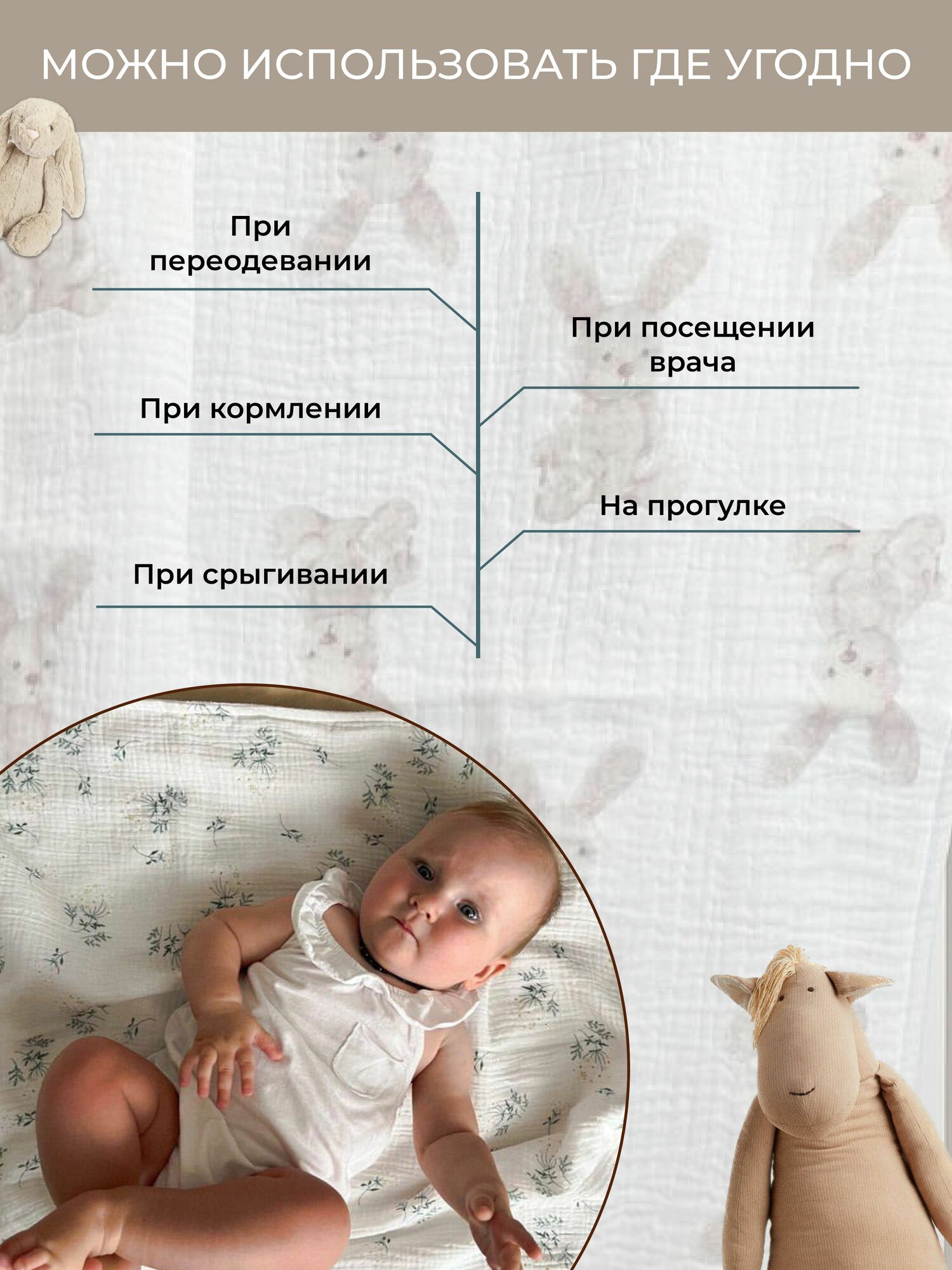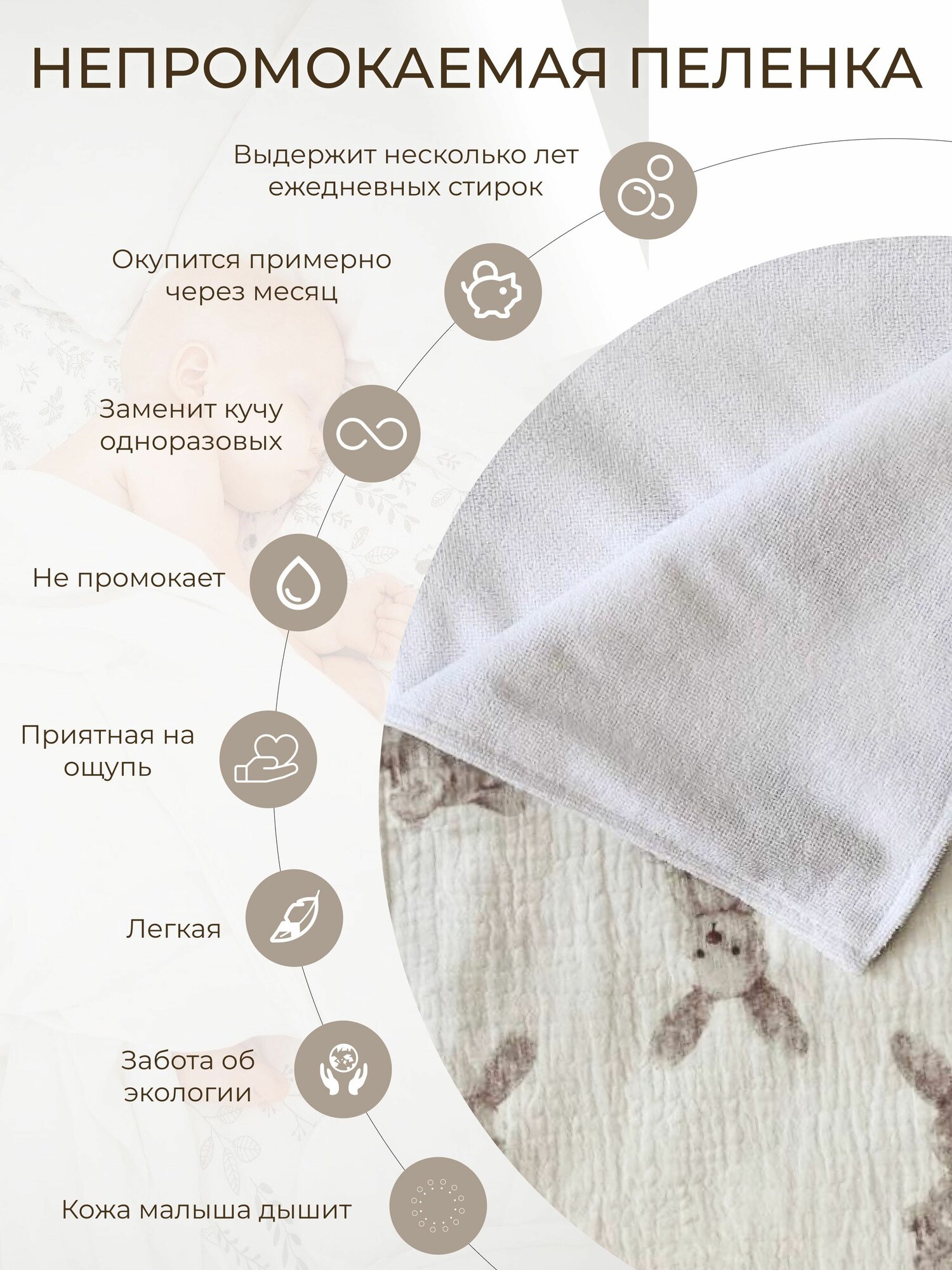 Многоразовая муслиновая непромокаемая пеленка для новорожденных 65х90 см, 1 шт Мако интересное: