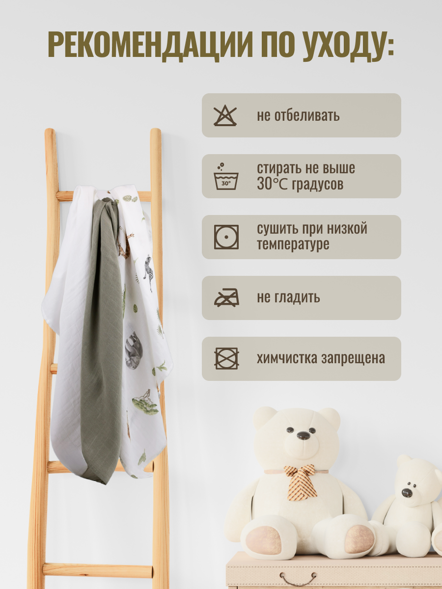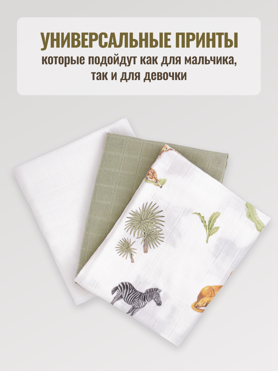 Набор муслиновых пеленок для новорожденных 80х100см "жираф"