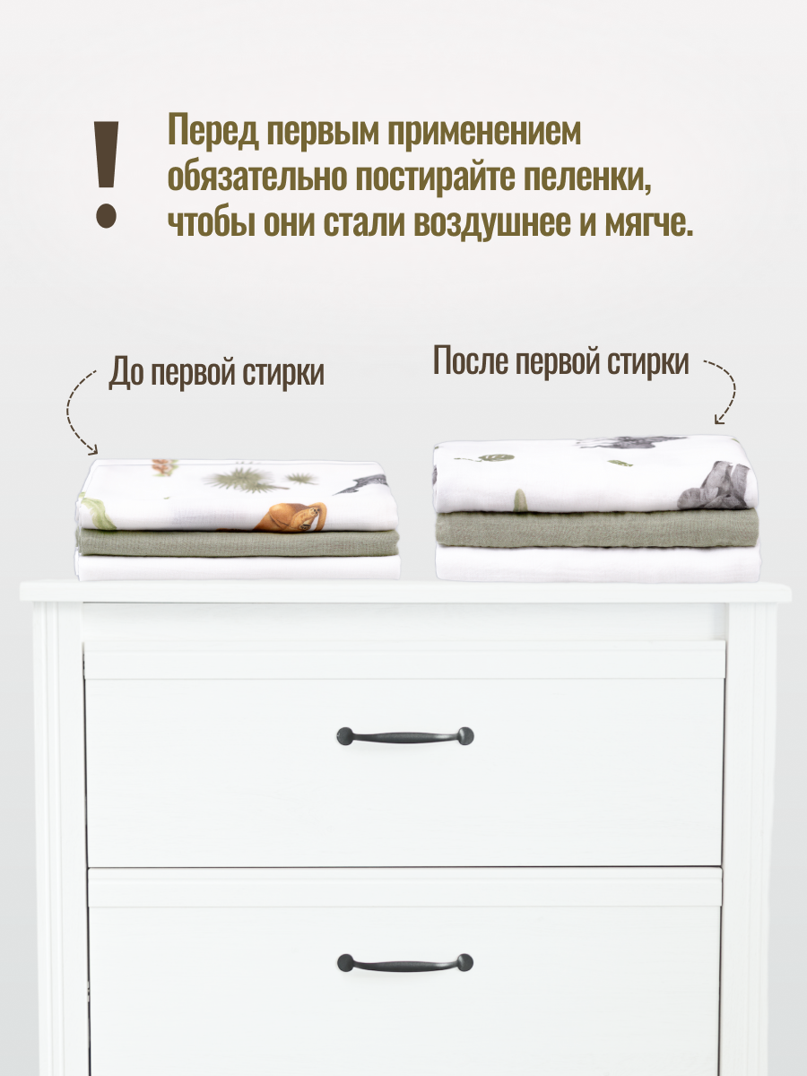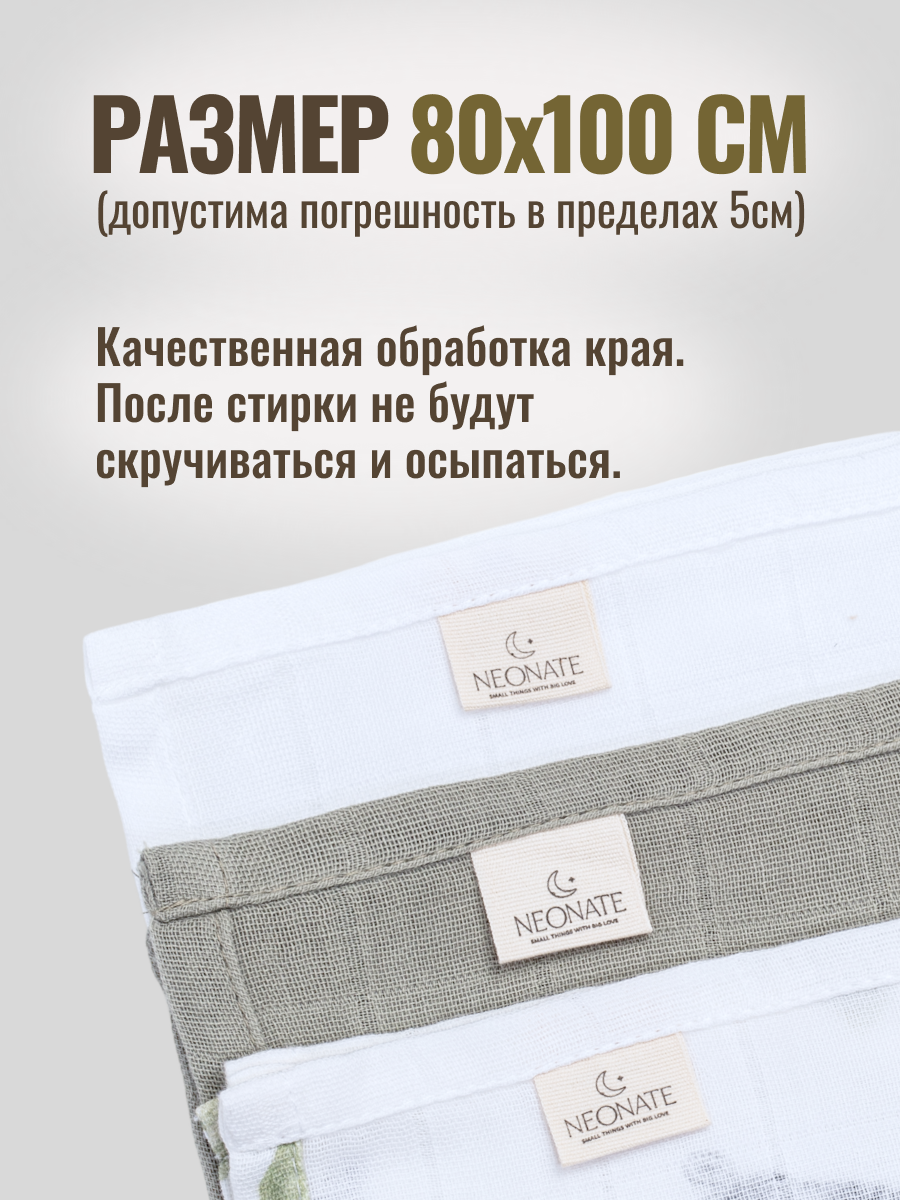Набор муслиновых пеленок для новорожденных 80х100см "ЛЕВ"