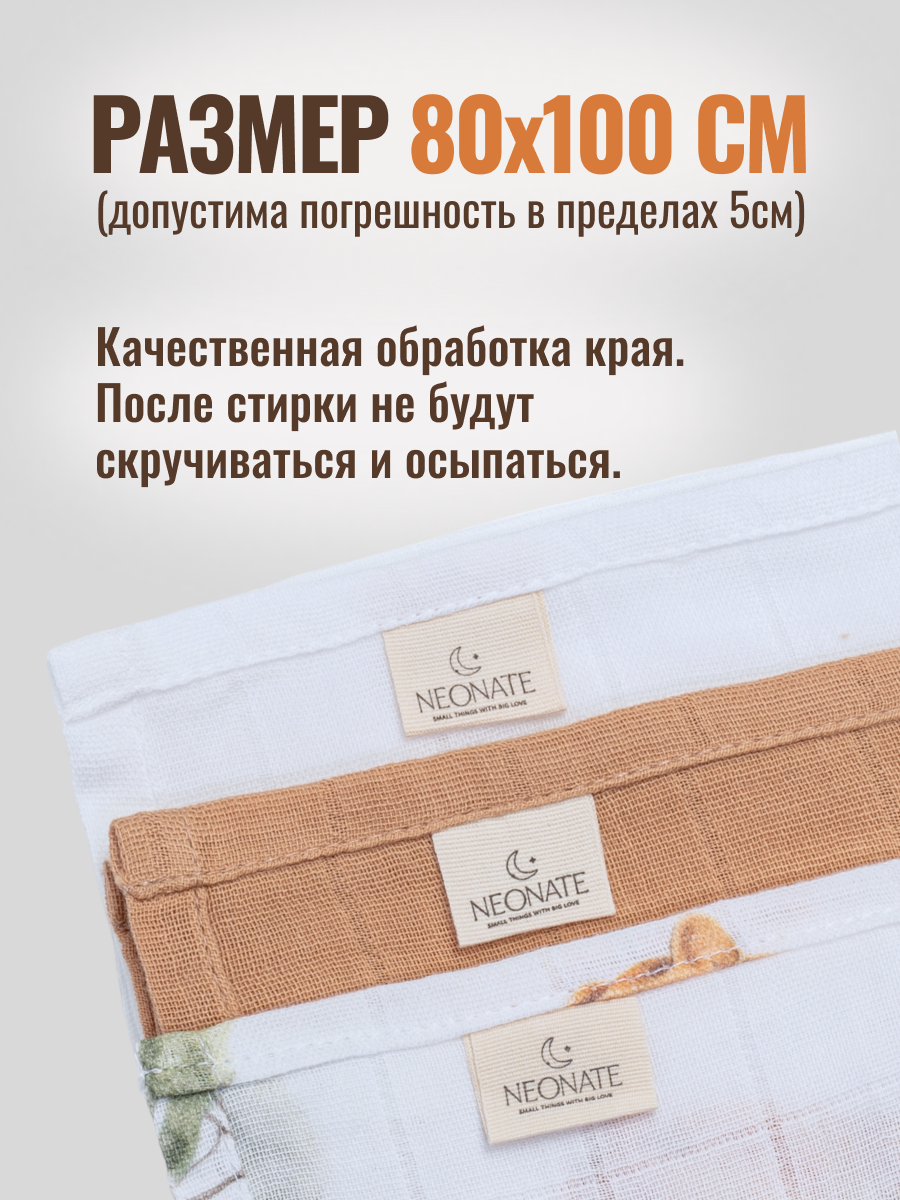 Набор муслиновых пеленок для новорожденных 80х100см "жираф"