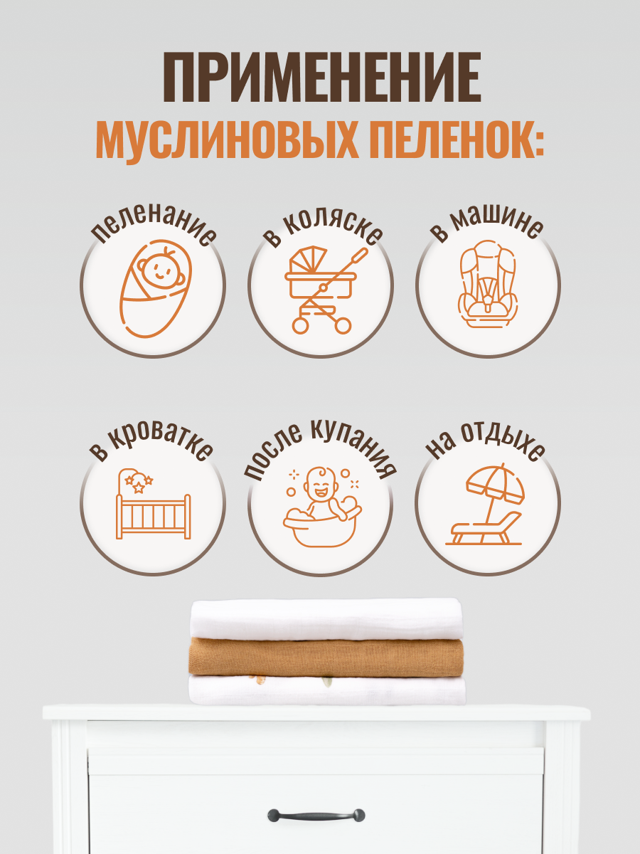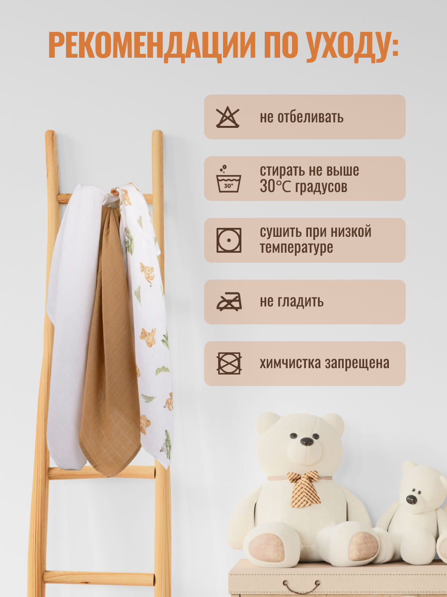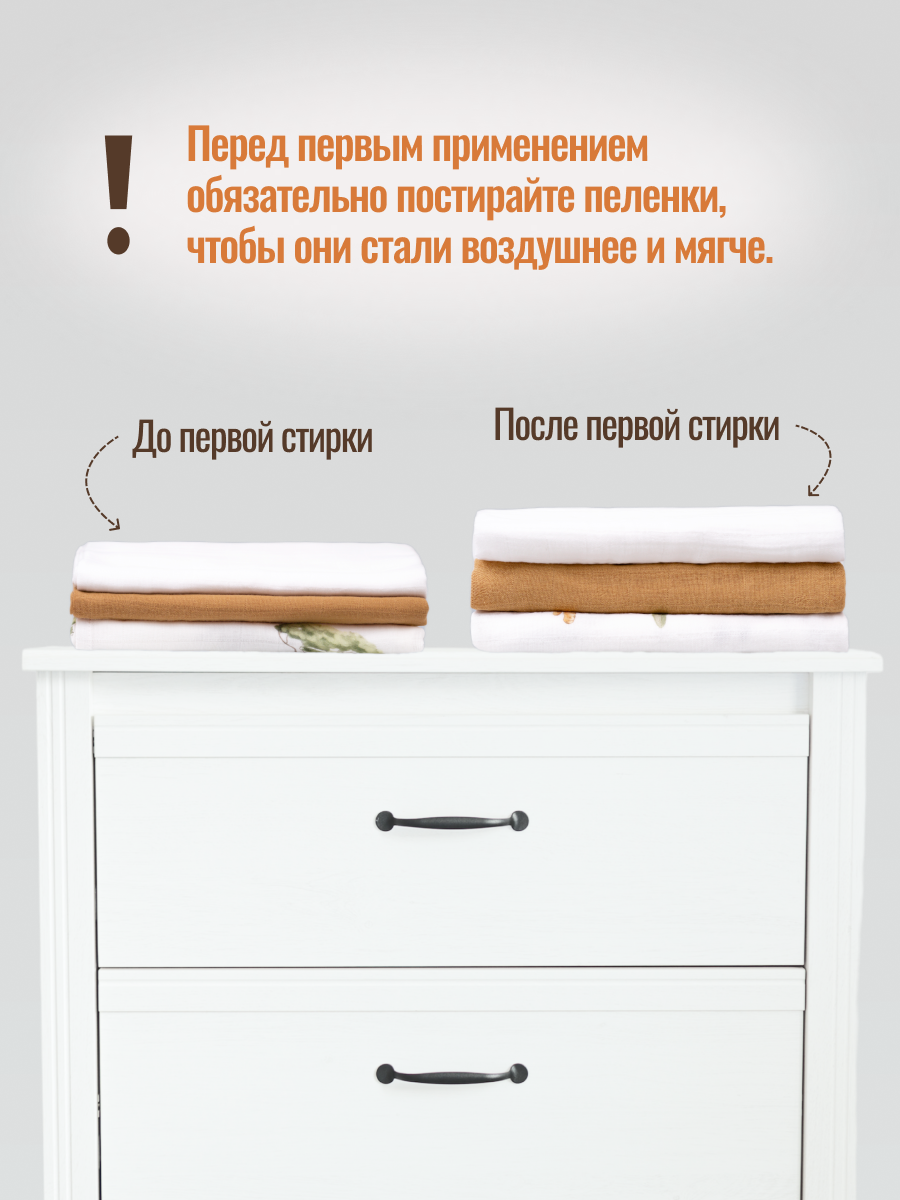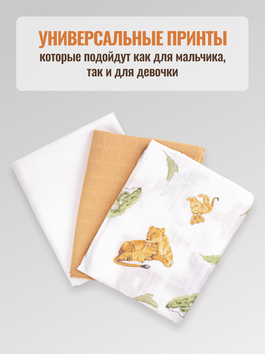 Набор муслиновых пеленок для новорожденных 80х100см "ЛЕВ" интересное: