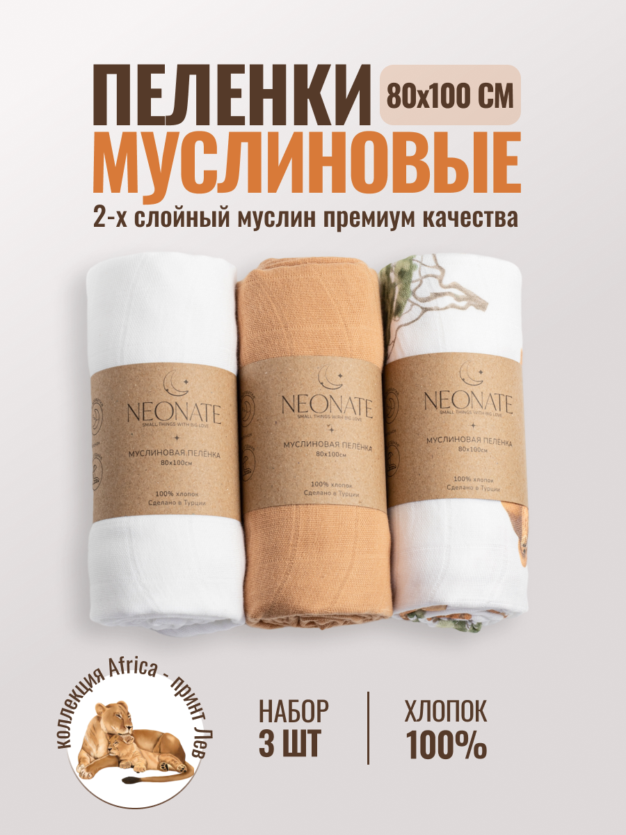 Купить Набор муслиновых пеленок для новорожденных 80х100см "ЛЕВ"