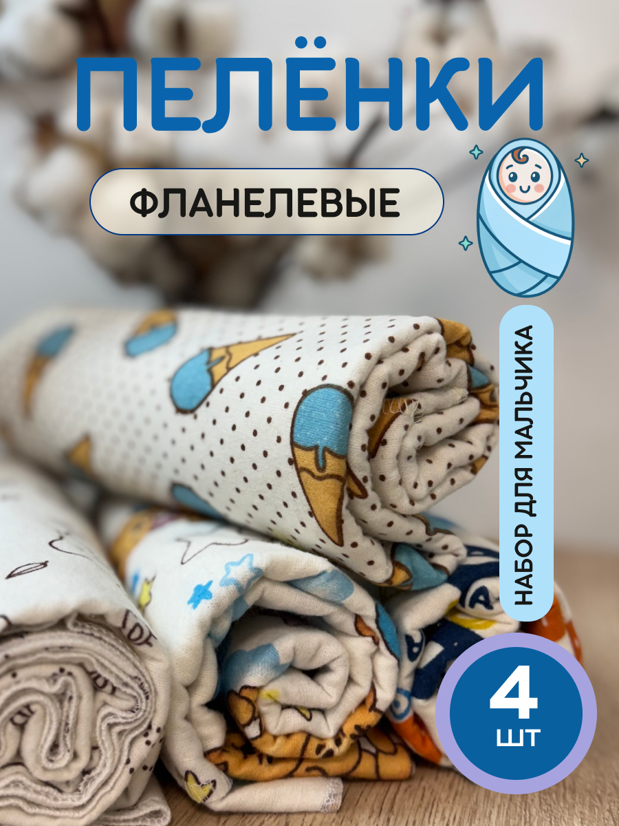 Набор пелёнок 4 штуки для новорождённых мальчики 90х110см интересное: