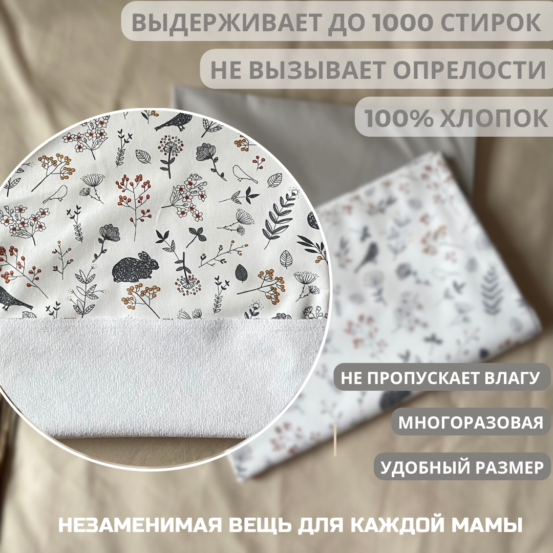 Непромокаемые пеленки для детей, размер 60х80 см, 2 штуки, ранфорс