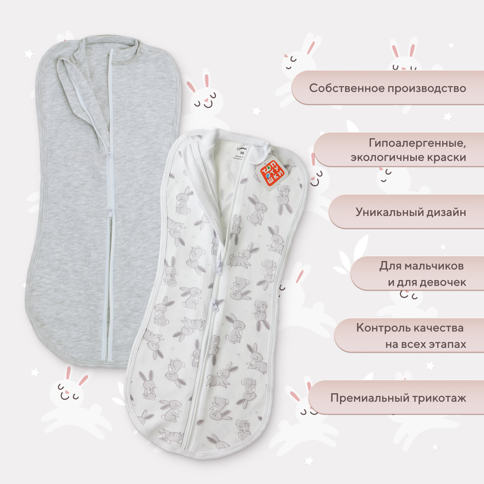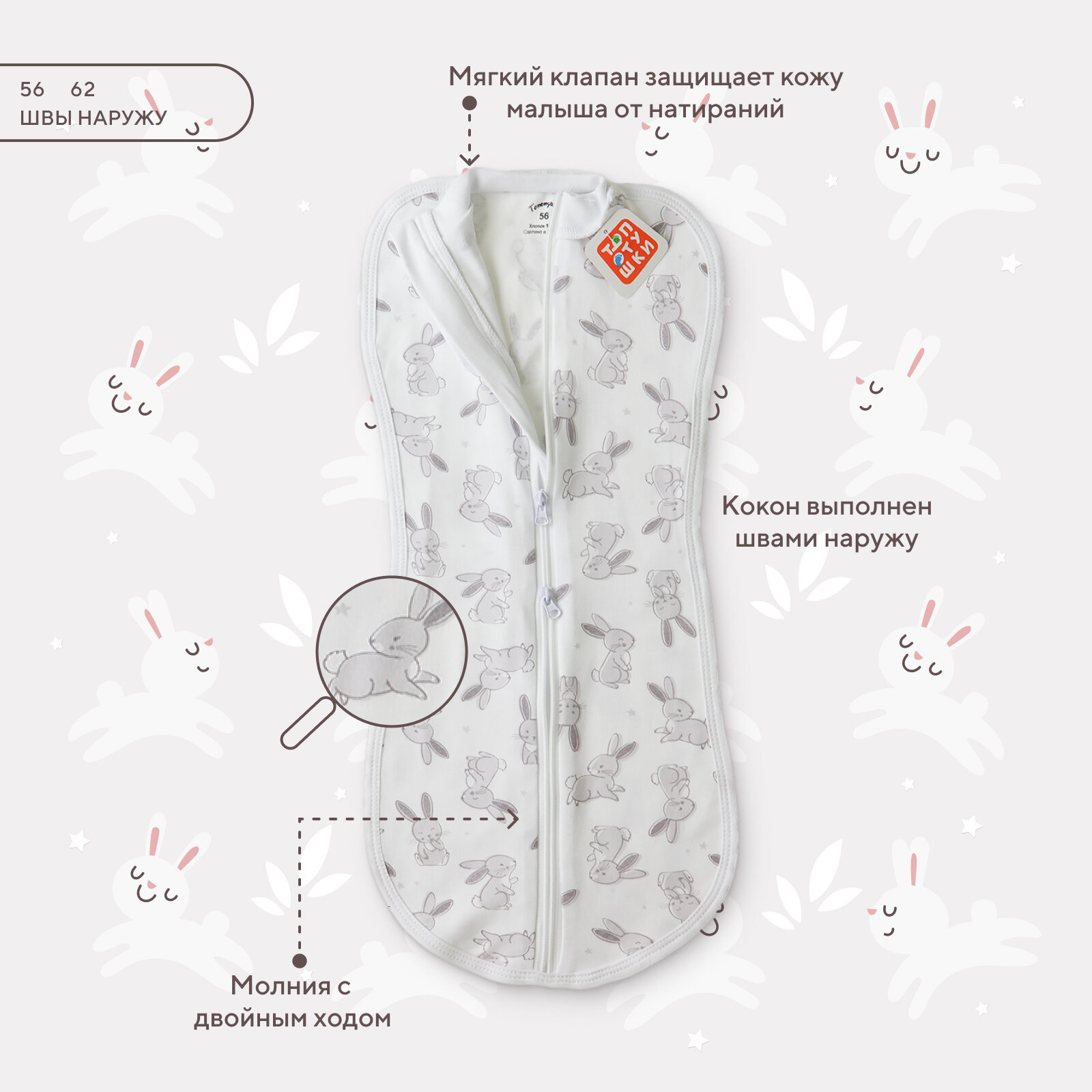 Пеленка-кокон на молнии "Зайчата" 001248-62 (2шт) интересное: