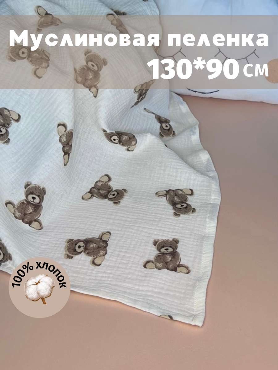 Муслиновая пеленка для новорожденных Kiddie Sofi бежевая с большими мишками, 130х90 см интересное: