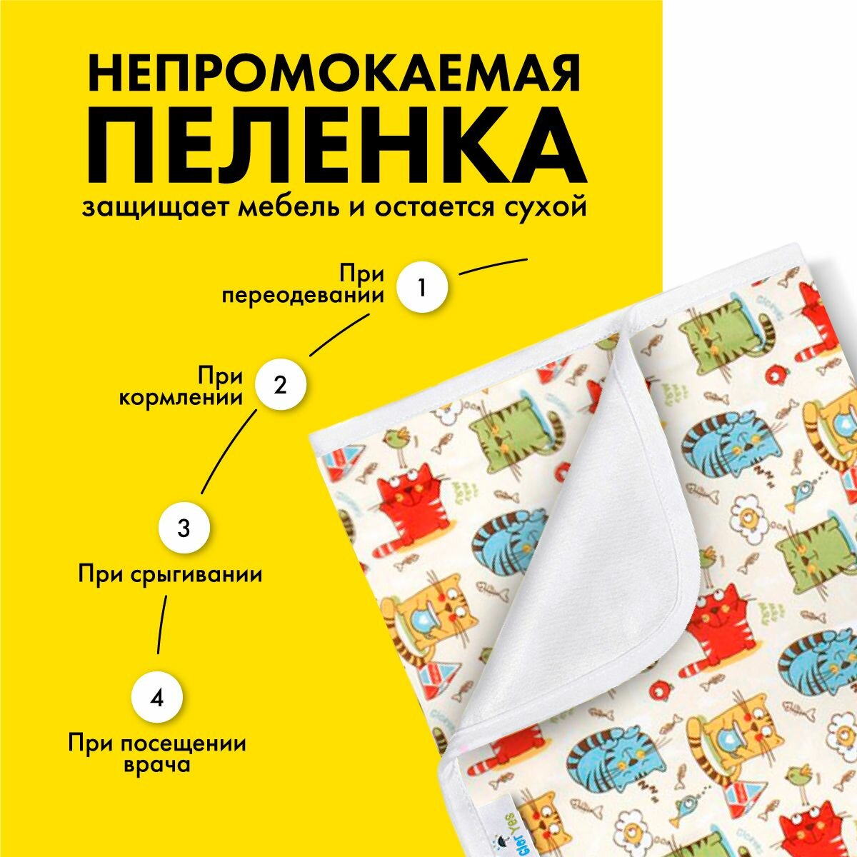Непромокаемая плюшевая пеленка-клеенка GlorYes! Коты на бежевом 80х68 см