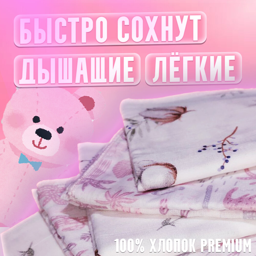 Пелёнки муслиновые, 100 % хлопок премиум Аккуратные края Для малышей от 0+ интересное: