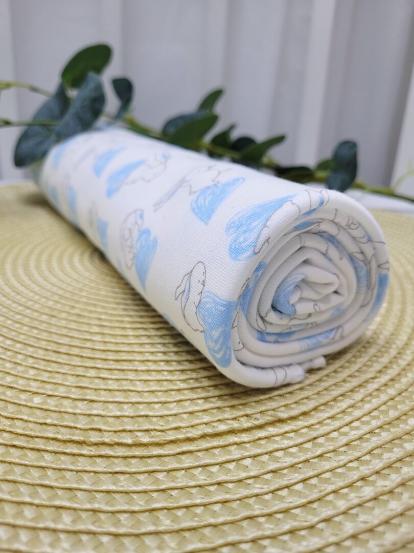 Купить Пеленка из трикотажа "Зайцы с голубыми сердечками" 90х100