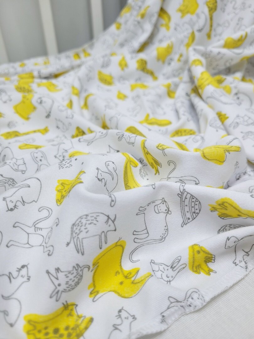 Купить Пеленки из интерлока"Животные контур желтый" 90*100см-2шт