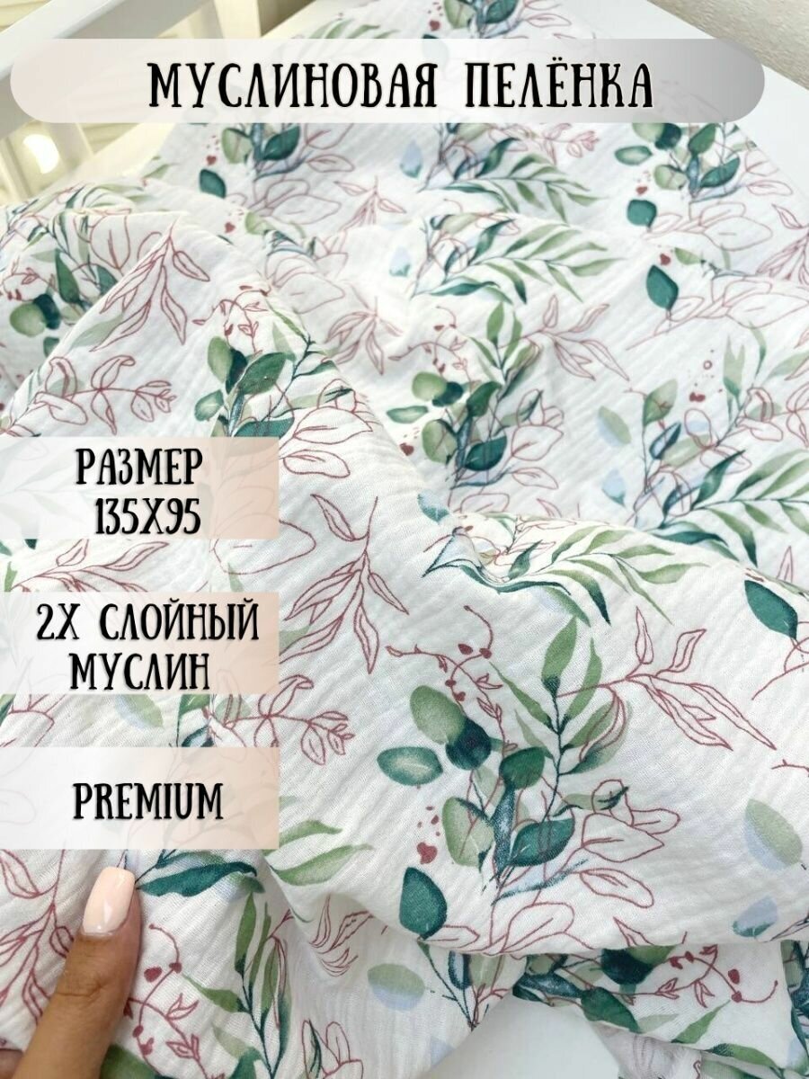 Пелёнка муслиновая для новорожденных жатая 95х65 Листики