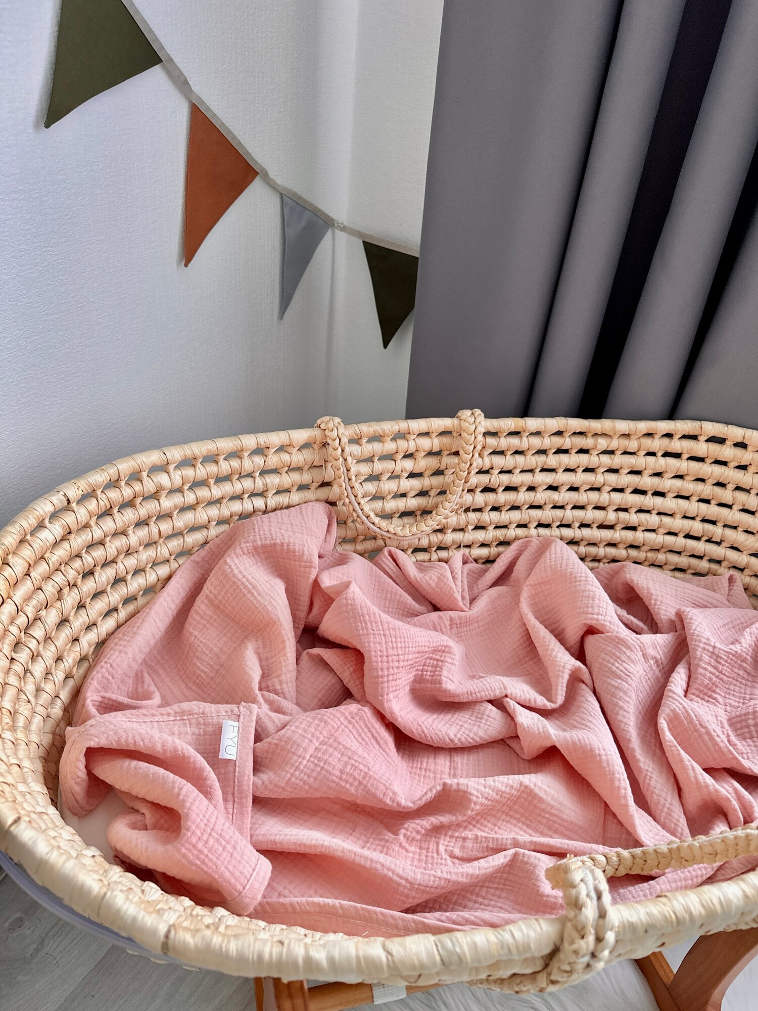 Пелёнка муслиновая для новорожденных жатая 95х65 нежно розовый