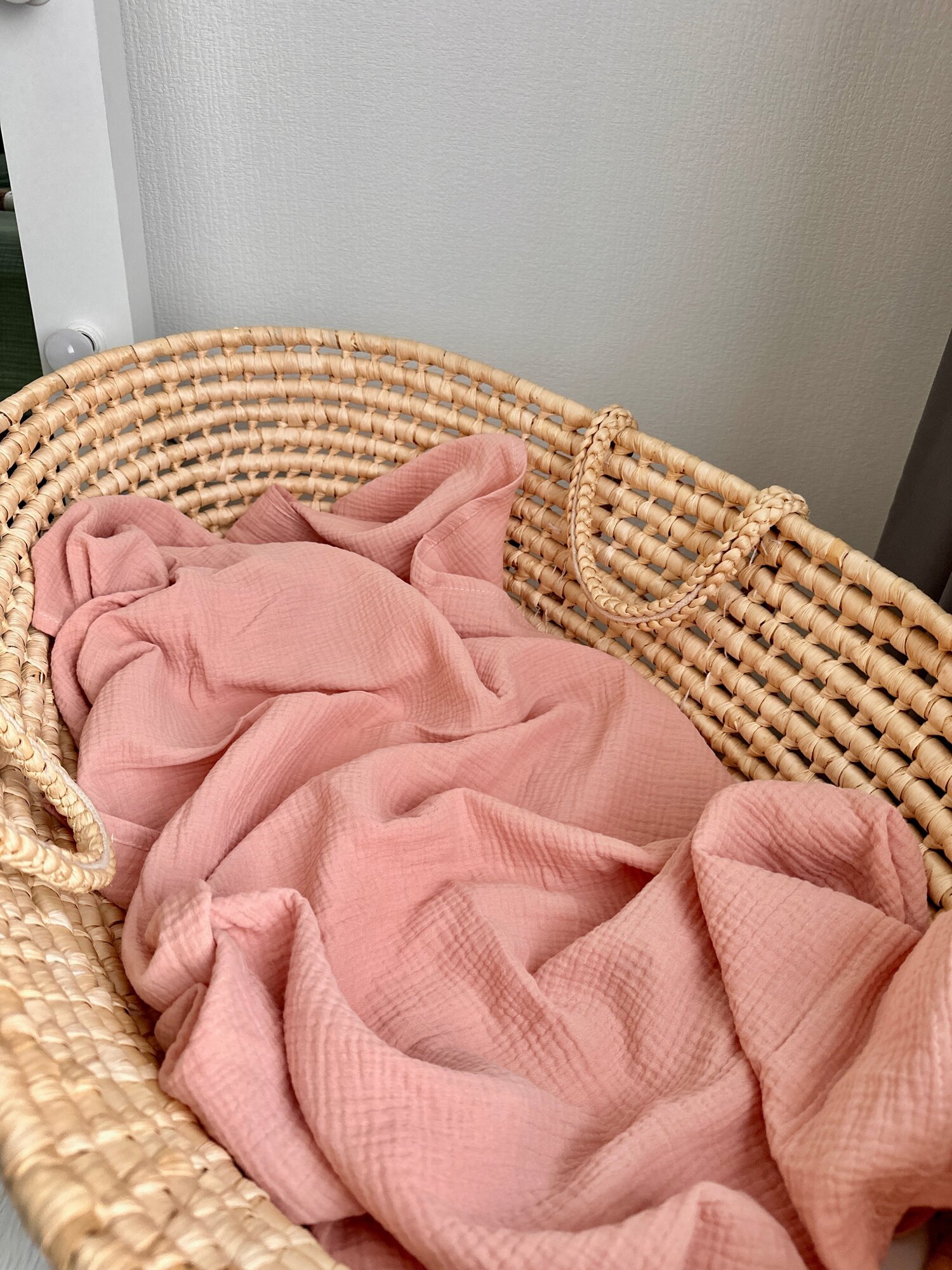 Купить Муслиновые пеленки для новорожденых , размер 95х135 , жатый муслин, пеленка из муслина многоразовая пудровая