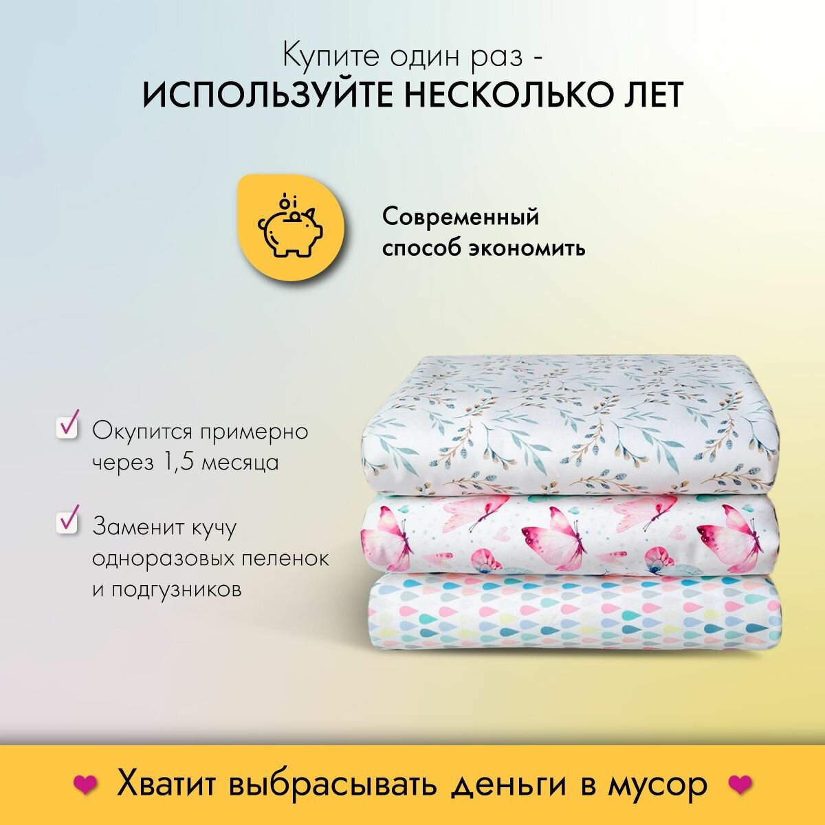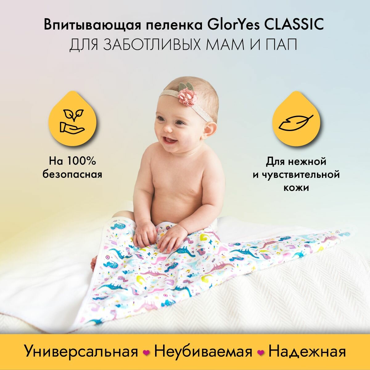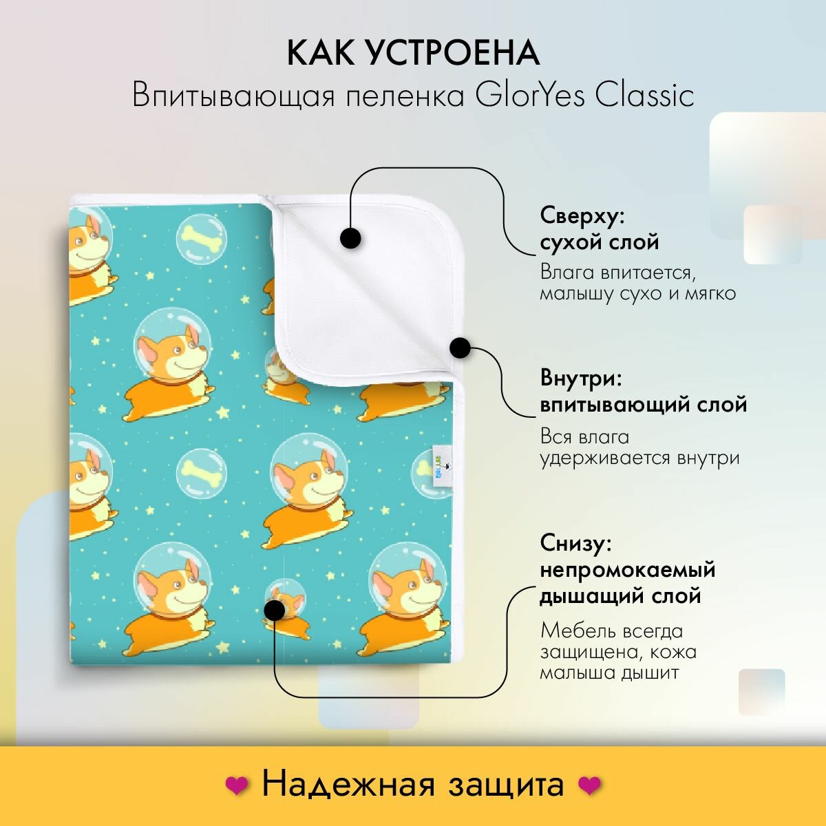 Впитывающая непромокаемая пеленка для сухого сна GlorYes! Мамина любовь 80х68 см