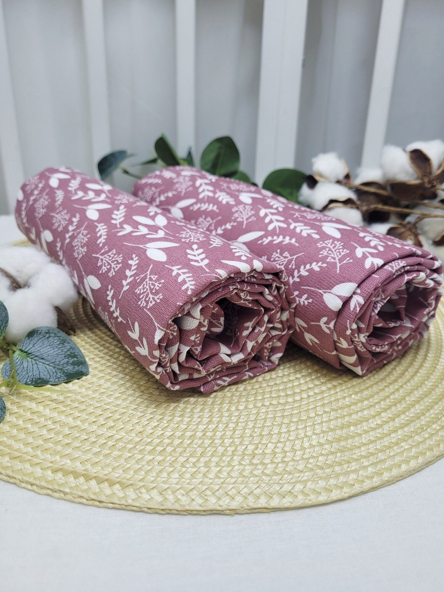 Купить Набор муслиновых пеленок "Веточки на брусничном" размер 100х120 см, 2шт.
