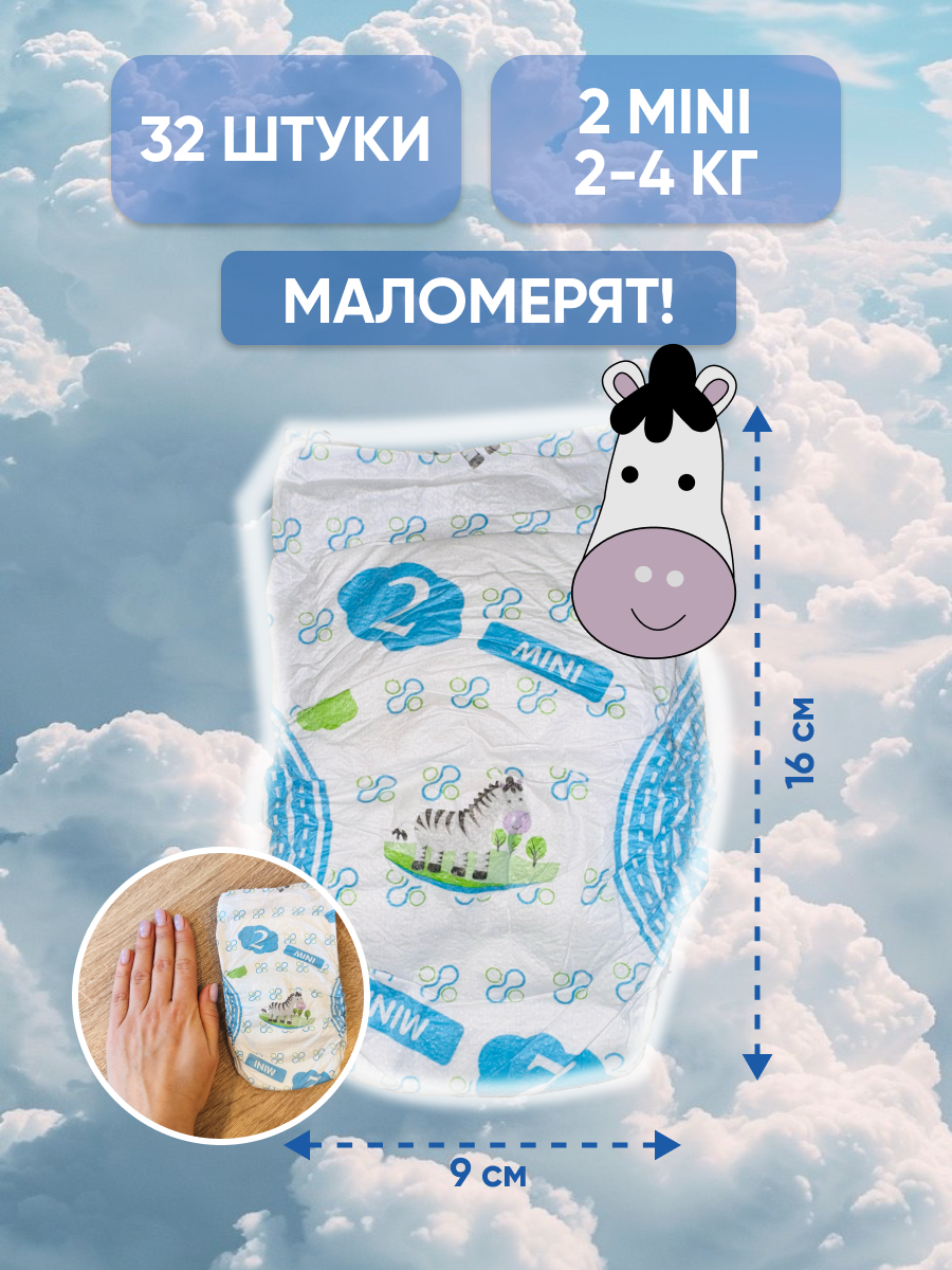 Подгузники Pure Baby Diapers 2 Mini для малышей весом от 3 до 6кг, 160 штук в упаковке интересное: