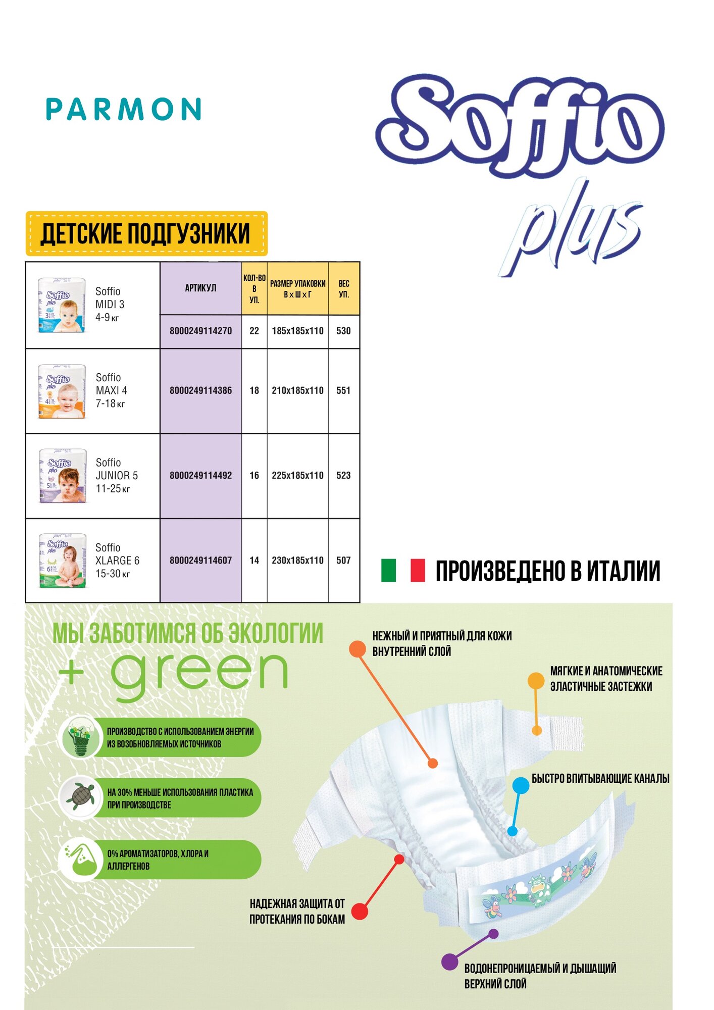 Soffio Plus подгузники детские 7-18 кг размер Maxi 4, 18 шт. интересное: