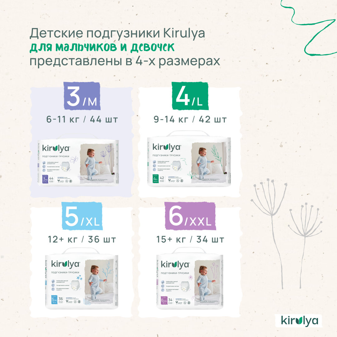 KIRULYA / кируля Подгузники трусики размер 3 M (6-11 кг), 44 шт интересное: