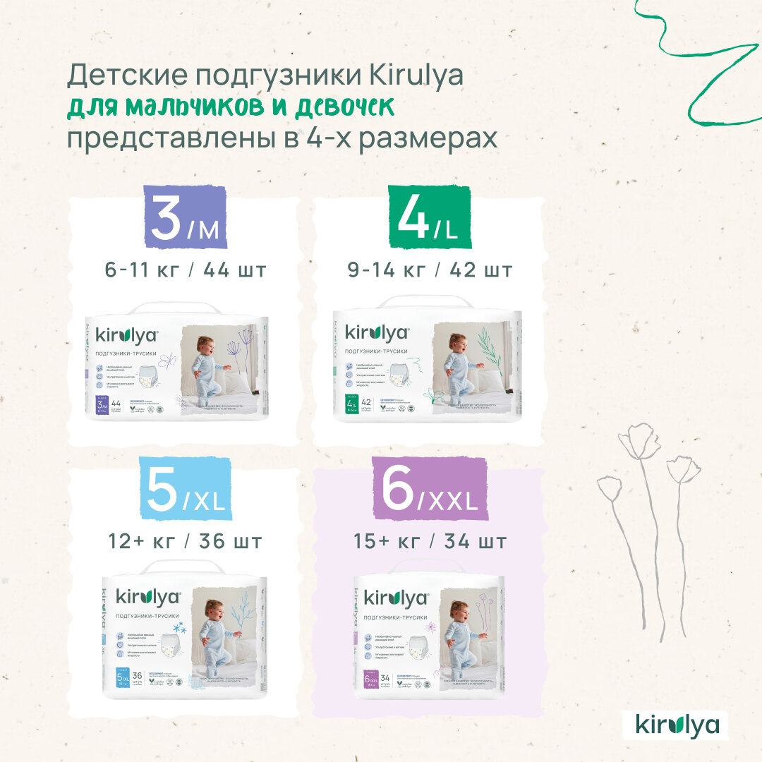 Kirulya / Кируля Подгузники трусики размер 5 ХL ( 12+ кг), 36 шт интересное:
