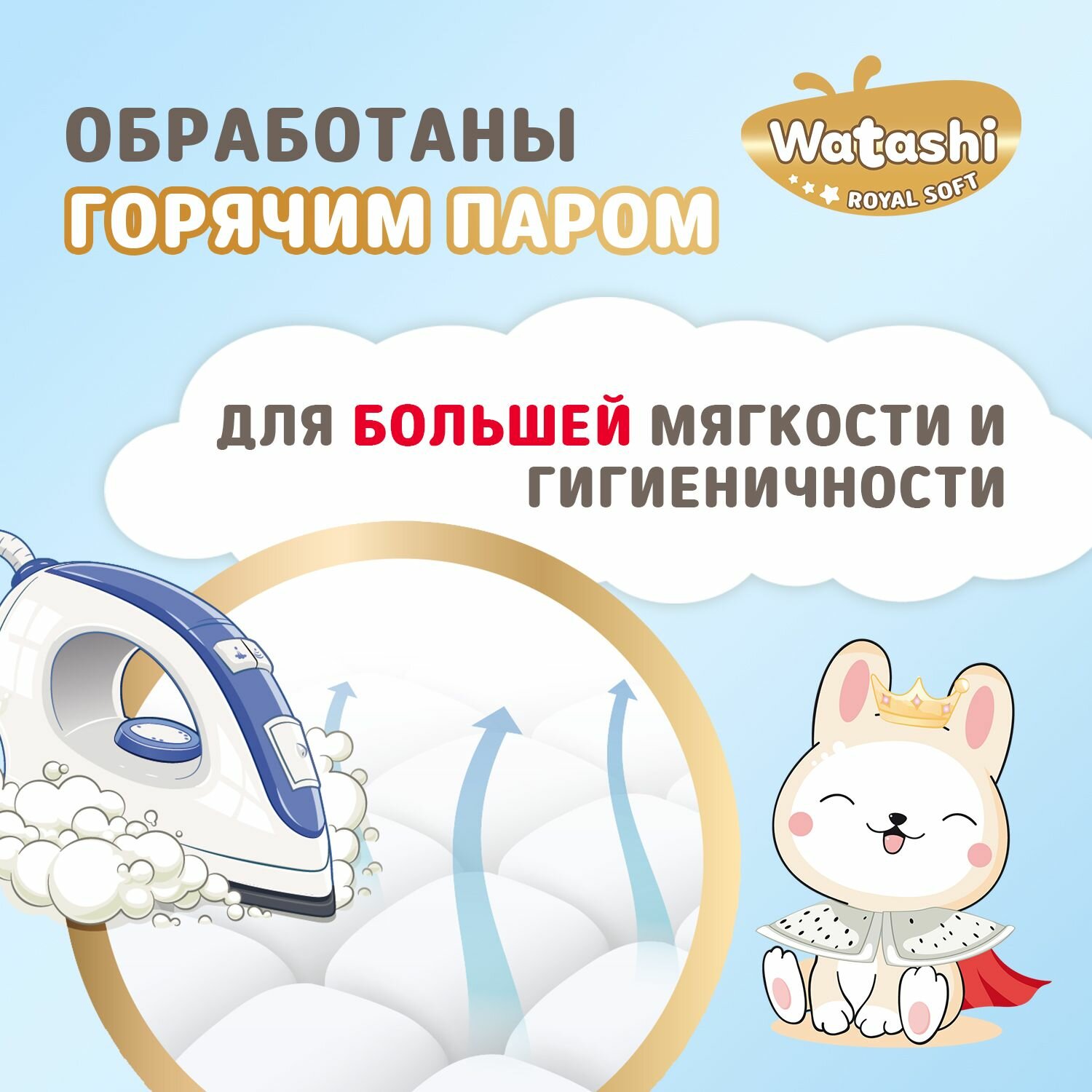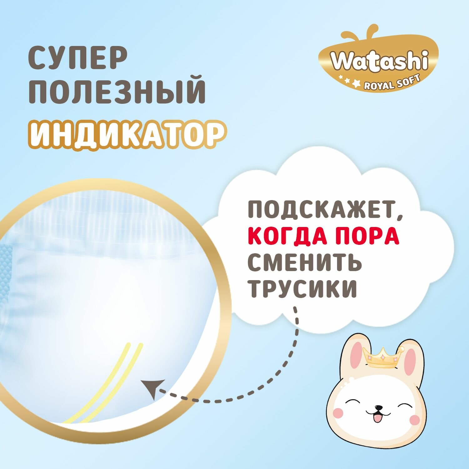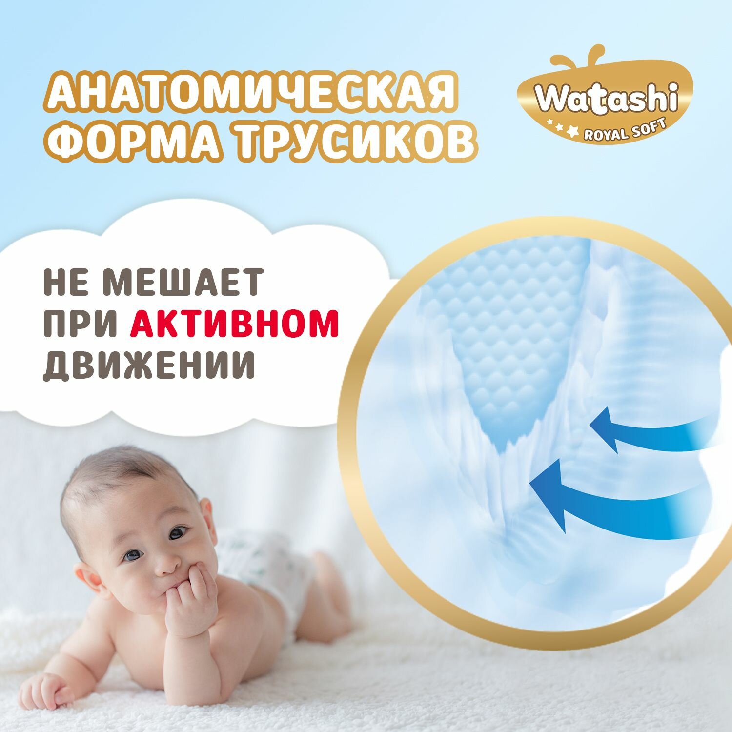 Подгузники трусики 4 L размер 9-14 кг 56шт WATASHI Royal Soft интересное: