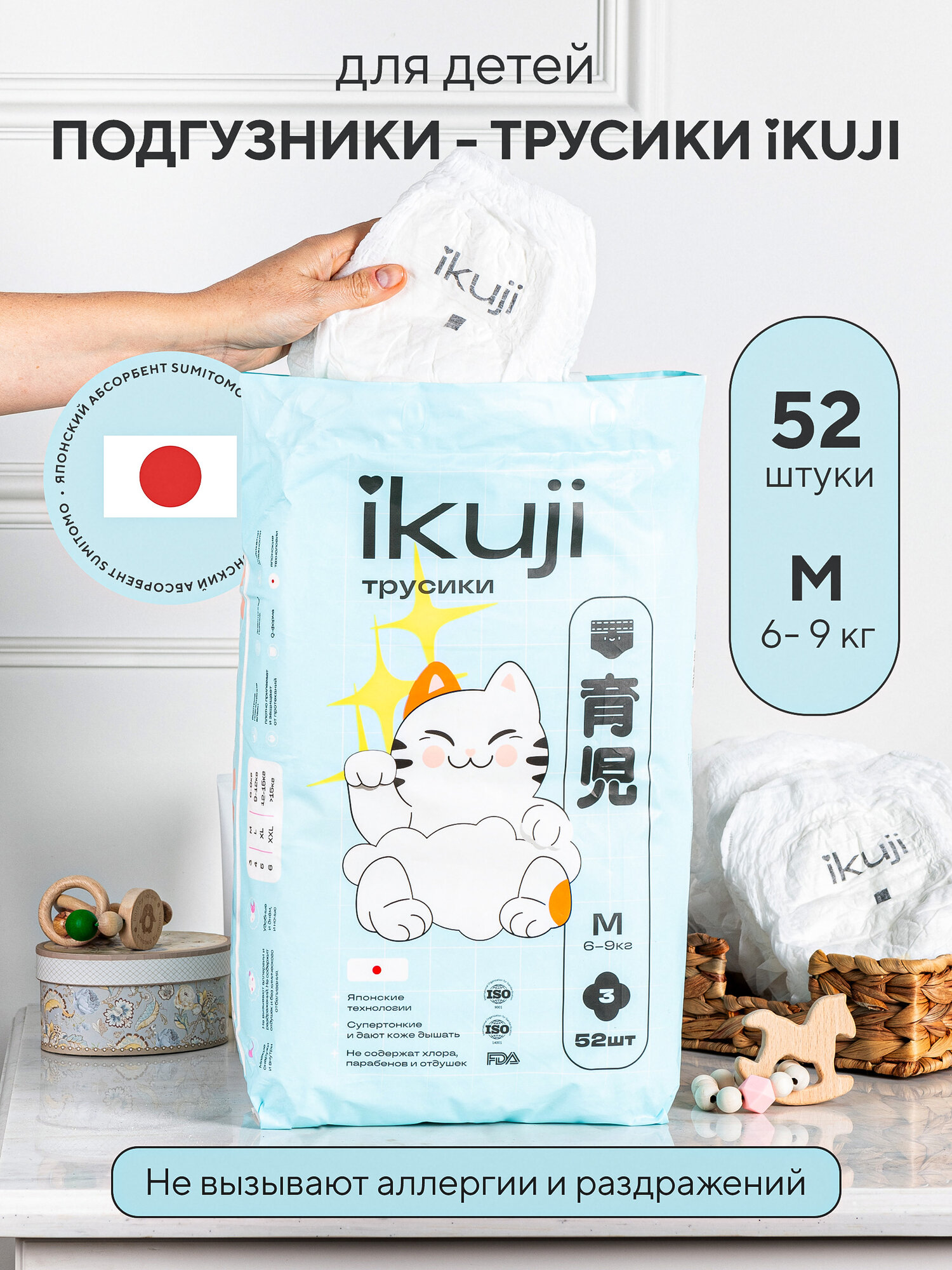 Подгузники трусики детские M 6-9 кг 52 шт. IKUJI дневные, с японским абсорбентом интересное: